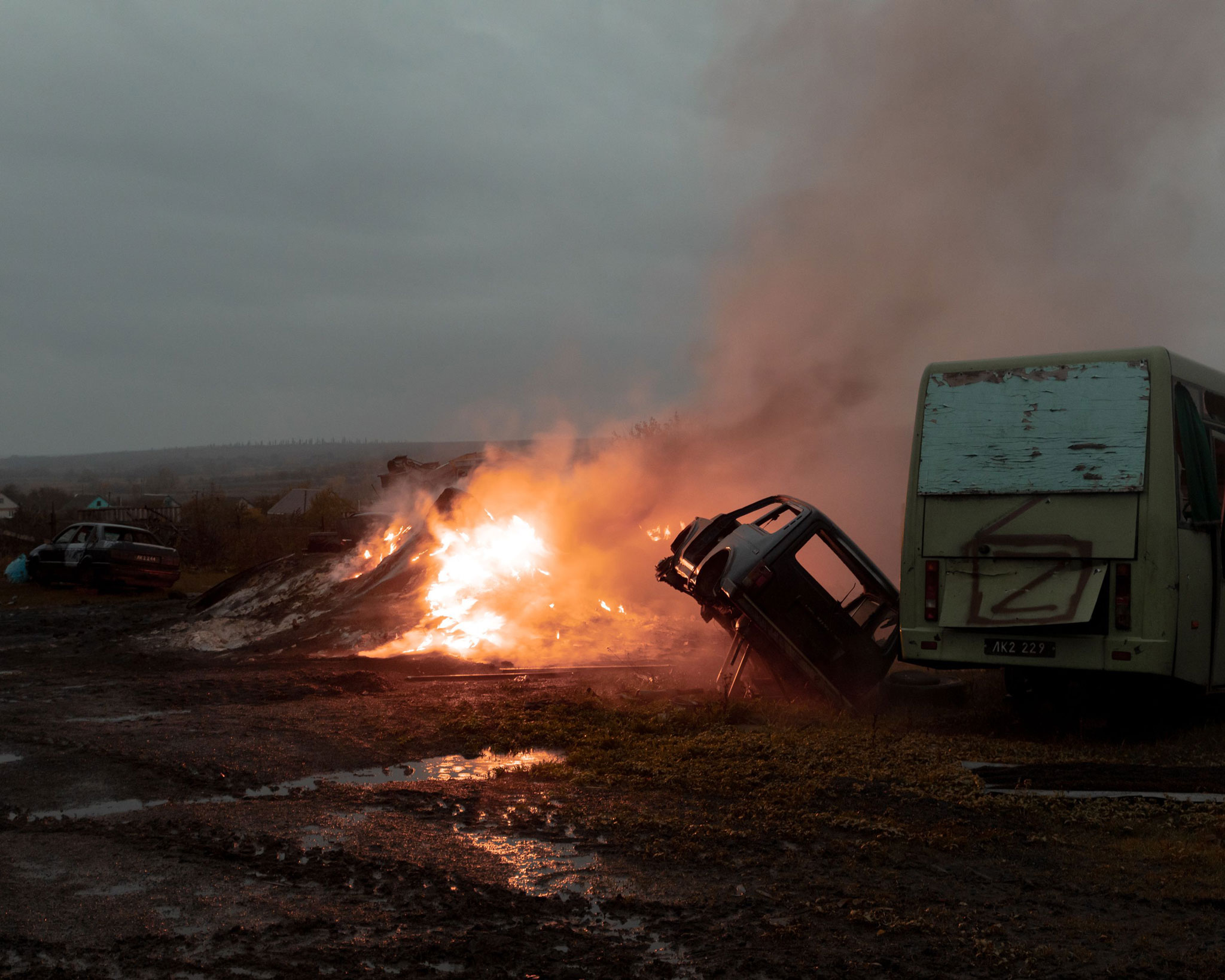 ...росія розпочала найбільшу наземну війну в Європі за десятиліття... Незважаючи на засудження у всому світі дій росії та посилення ізоляції країни, війна досі триває — так фотограф описує свою серію робіт «24.02.2022 - present».