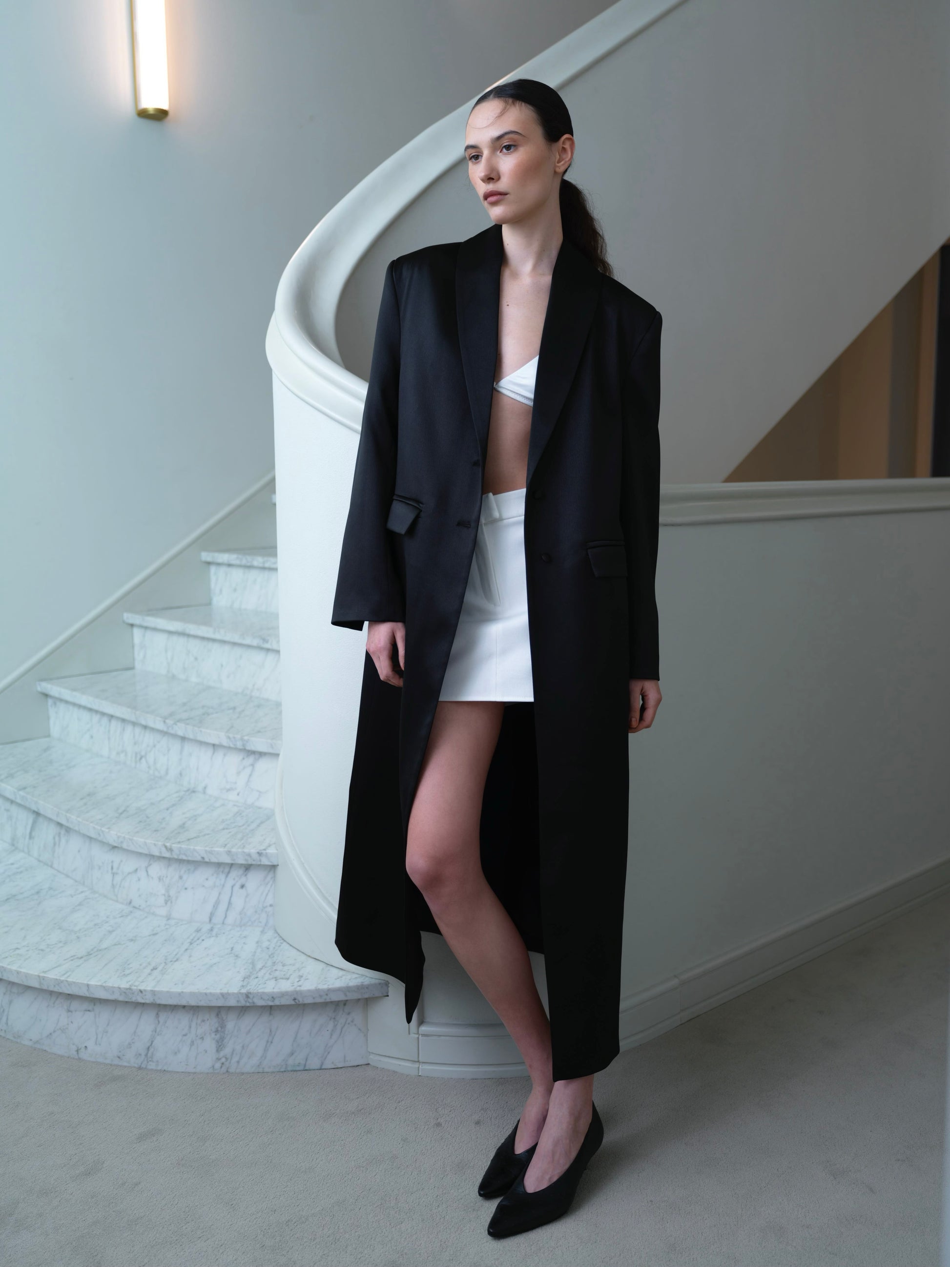 Вечірня капсула FEMME від CICI COCO поєднує елегантність зі спокусливістю. У ній, поряд із сатиновим максіпіджаком і довгою драпірованою максісукнею, представлені мінімалістичні мініспідниці, сміливий напівпрозорий боді, шкіряні штани кльош та короткі структуровані кейпи.