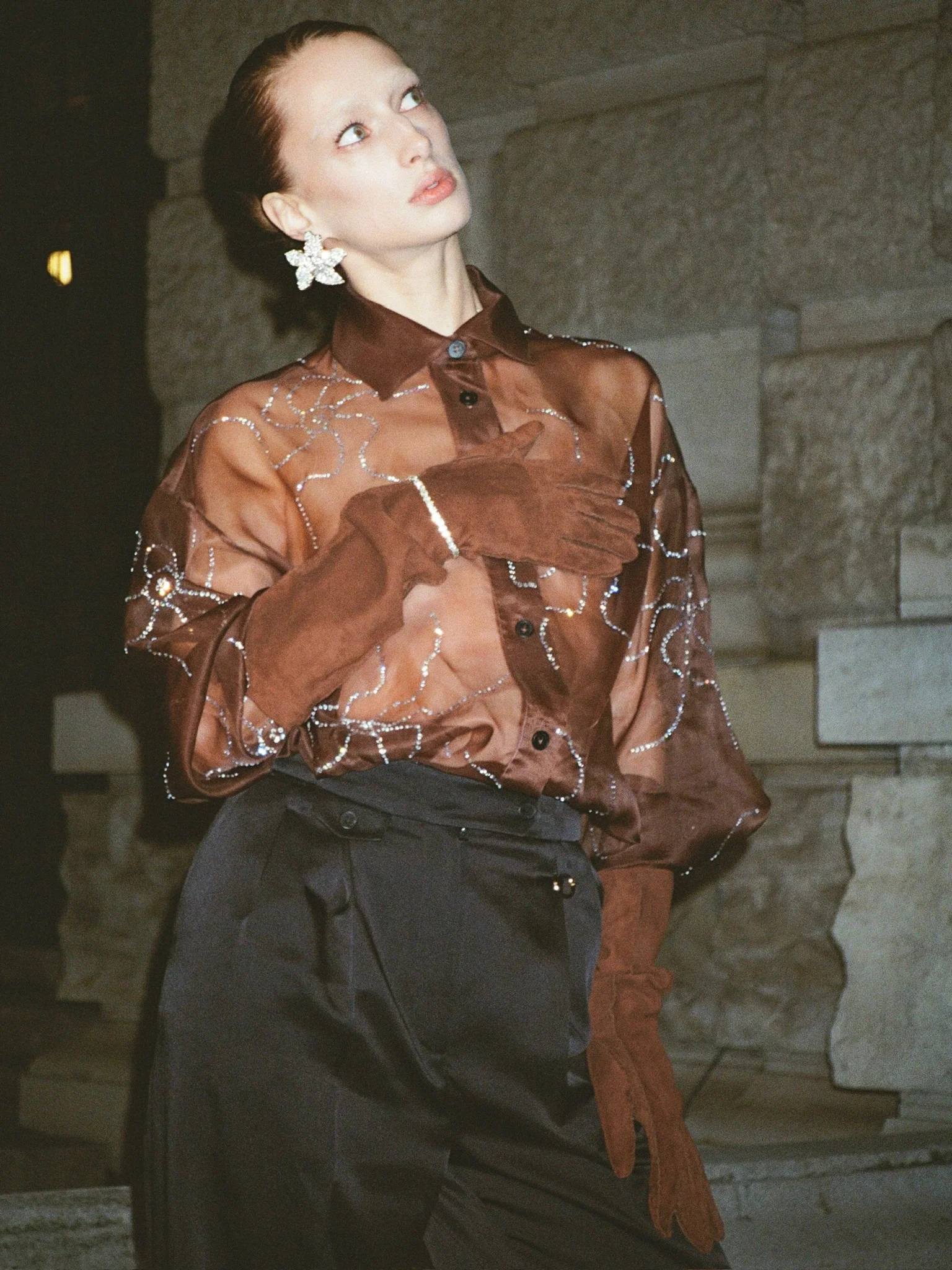 Завершити святкові образи у KATERINA KVIT рекомендують аксесуарами — довгими шкіряними та замшевими рукавицями й гібридом рукавиць із шарфом, також декорованим кристалами Swarovski.