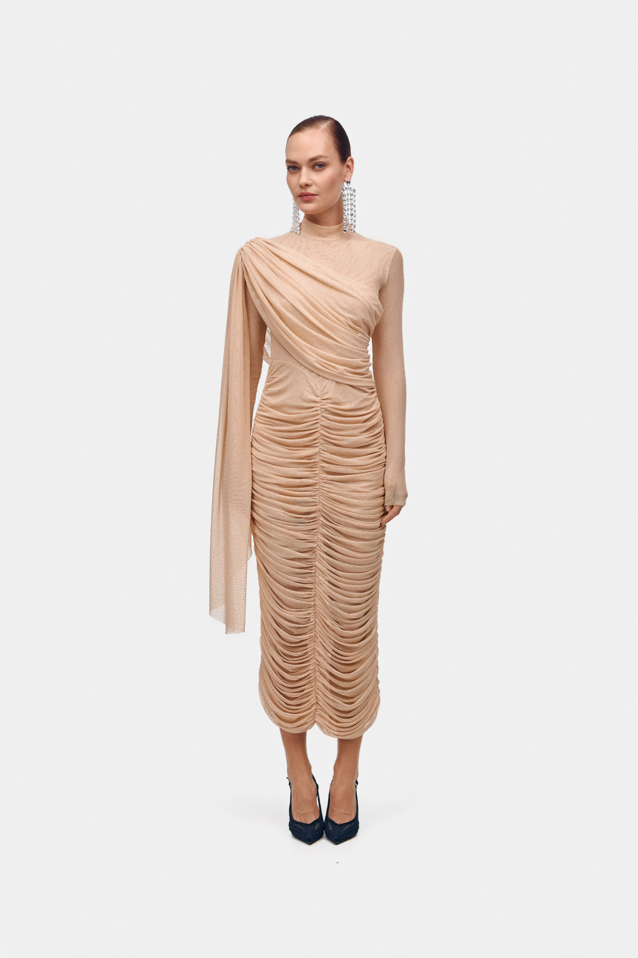 Для тих, хто шукає образ для зустрічі Нового року та Різдва, My x My представив елегантні й драматичні максісукні в колекції Lunar Aura. Серед них — вишукана Loulou з асиметричним драпіруванням і декоративним шлейфом на плечі; спокуслива Una з асиметричним бічним вирізом на талії; Brie з одним довгим рукавом, що переходить у рукавицю; і зухвала Yuna з верхом, стилізованим під шкіру.