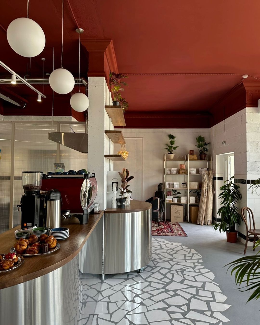 Тут варять свіжий фільтр та випікають круасани (з малиною, персиком, лососем). А ще у кав'ярні можна скуштувати деруни з цукіні та веганські бомболоні.