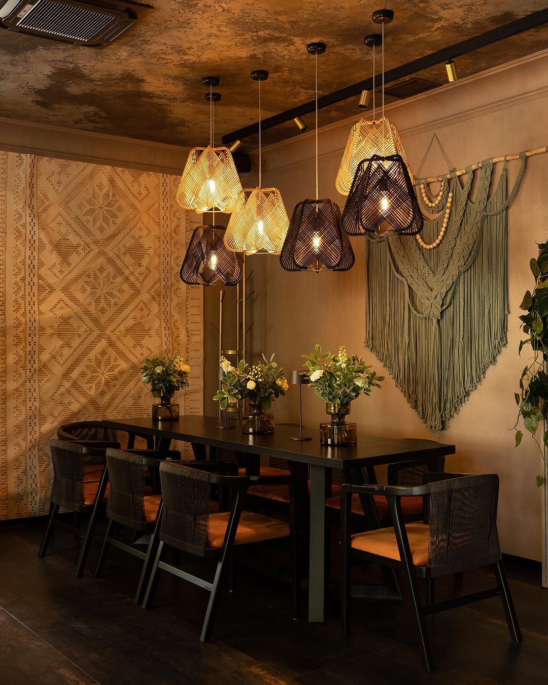В оформленні інтер'єру — майже сторічна українська черепиця (яка при цьому наче брат-близнюк схожа на ту, якою покривають дахи будинків жителі Азії). Власники використали її для оздоблення стін та стола для великих компаній.