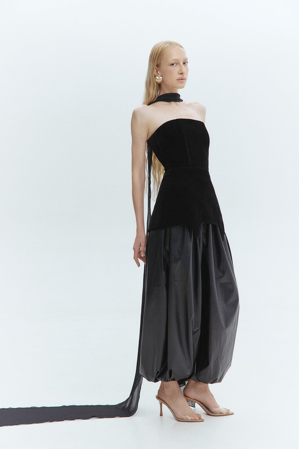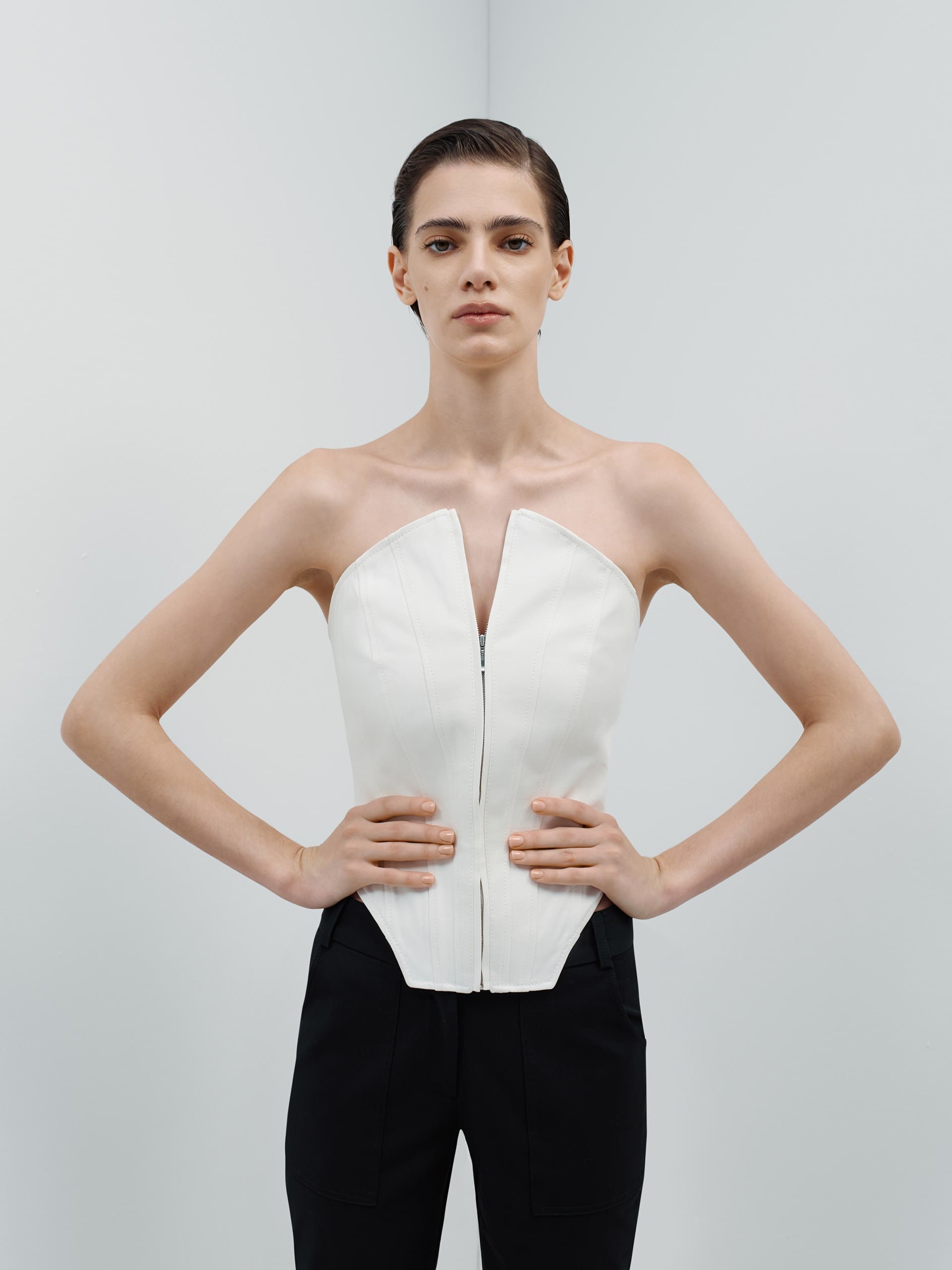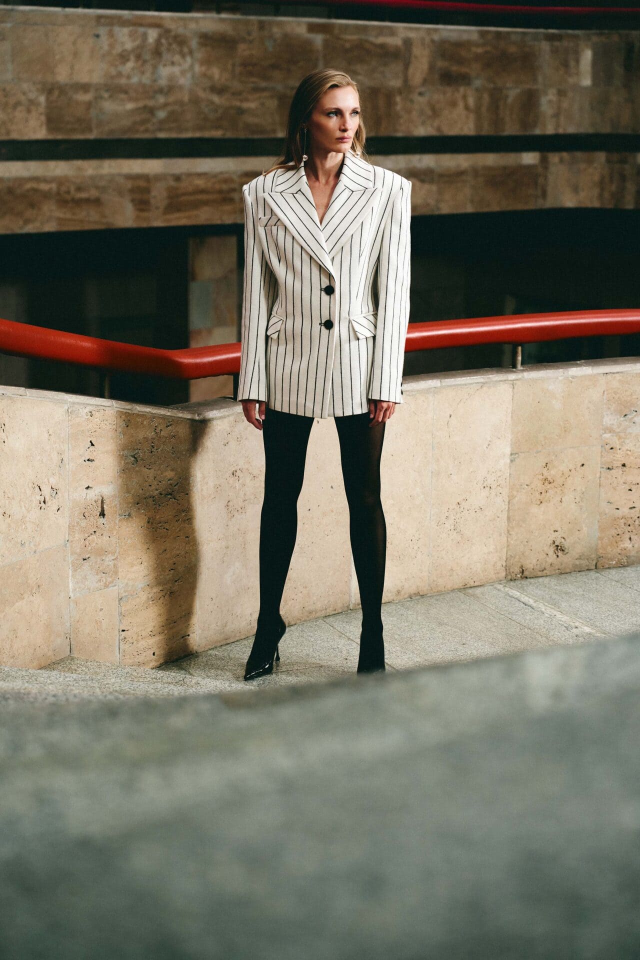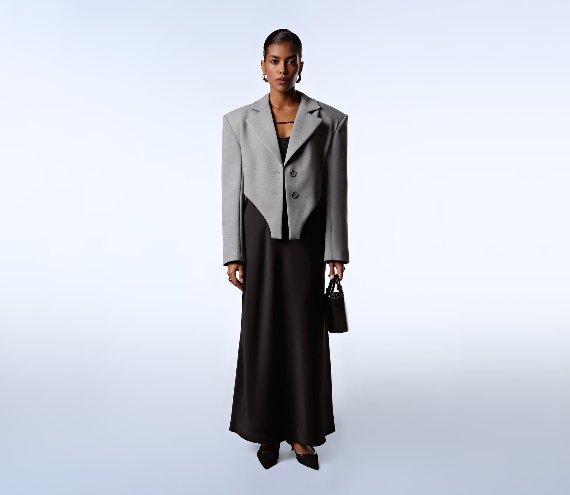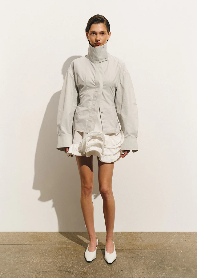Структурований силует, стійка форма та чіткі лінії — одяг, що нагадує текстильні скульптури, опинився в центрі уваги українських дизайнерів. Гра з архітектурністю втілилася у джинсовому топі MATELO, жакетах від Friends of Fashion та колаборації Alina Boi x Bazhane, сукнях SHTOR, J'amemme й Darja Donezz, а також у мініспідниці TG Botanical.