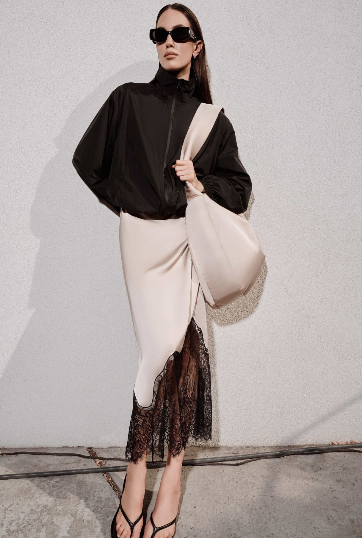 Шкіряні речі залишаються мастхевом, охоплюючи всі категорії гардероба — від верхнього одягу та суконь до топів. Цей матеріал уособлює впевненість і відкриває простір для стильних експериментів на контрастах, коли, наприклад, строгість шкіри поєднується з ніжністю інших виробів. У цьому сезоні шкіра стала фаворитом і серед українських брендів, з'явившись в асортименті diadia, СІСІ СОСО, Wild Hearts, GURANDA, KULAKOVSKY та SAYYA.