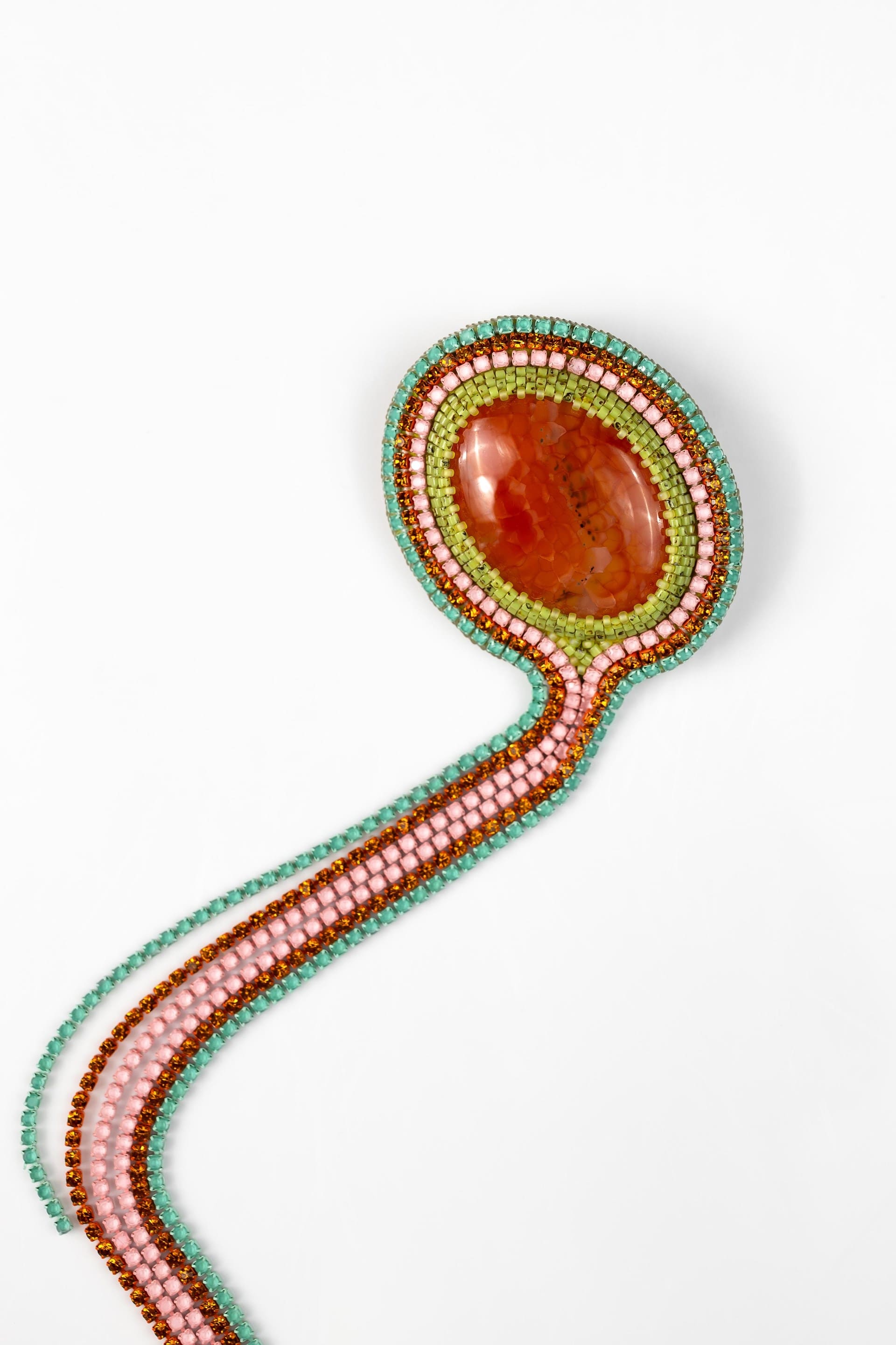 Окрім квітів і птахів, в асортименті українських брендів представлені аксесуари з іншими цікавими символами та образами. Це, зокрема, ефектна барвиста брошка SAMOKISH, названа HALLEY на честь найвідомішої комети у світі — Галлея. Вона виконана з блискіток, японського бісеру TOHO BEADS та натуральної шкіри з каменем сердолік у центрі.