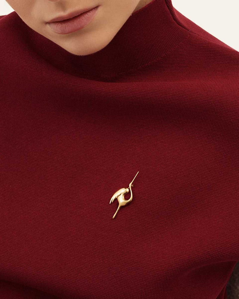 Лелеки — давній анімалістичний символ в українській культурі — теж трансформувалися у брошки завдяки ювелірному бренду MarkoSoli. А GUNIA Project створили аксесуар з іншим важливим птахом-символом — півником, який відсилає до знаменитого керамічного виробу з Бородянки.