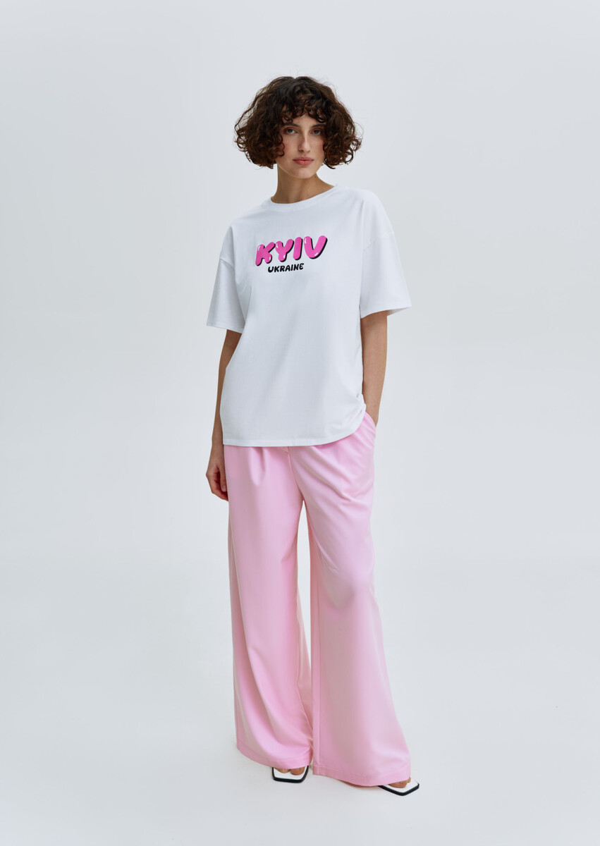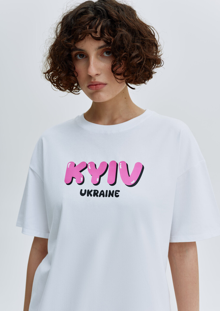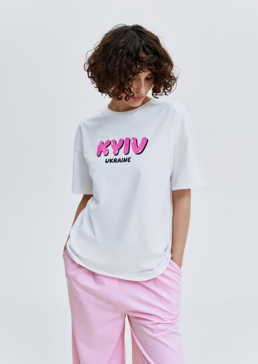 Цьогоріч в обмеженій кількості бренд Cabanchi теж випускає свою оду любові до Києва у вигляді базової білої футболки з рожевим принтом Kyiv. Вона стане твоєю ідеальною супутницею 26 травня — у день, коли столиця цьогоріч відзначатиме своє свято.