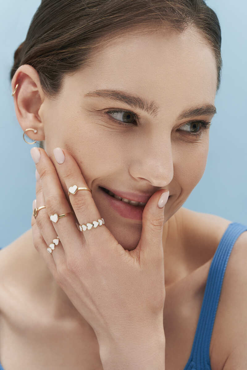 Також до свята підготували перстень у двох кольорах золота з емаллю, а чудовим доповненням до каблучки стануть золоті сережки з емаллю у формі серця.