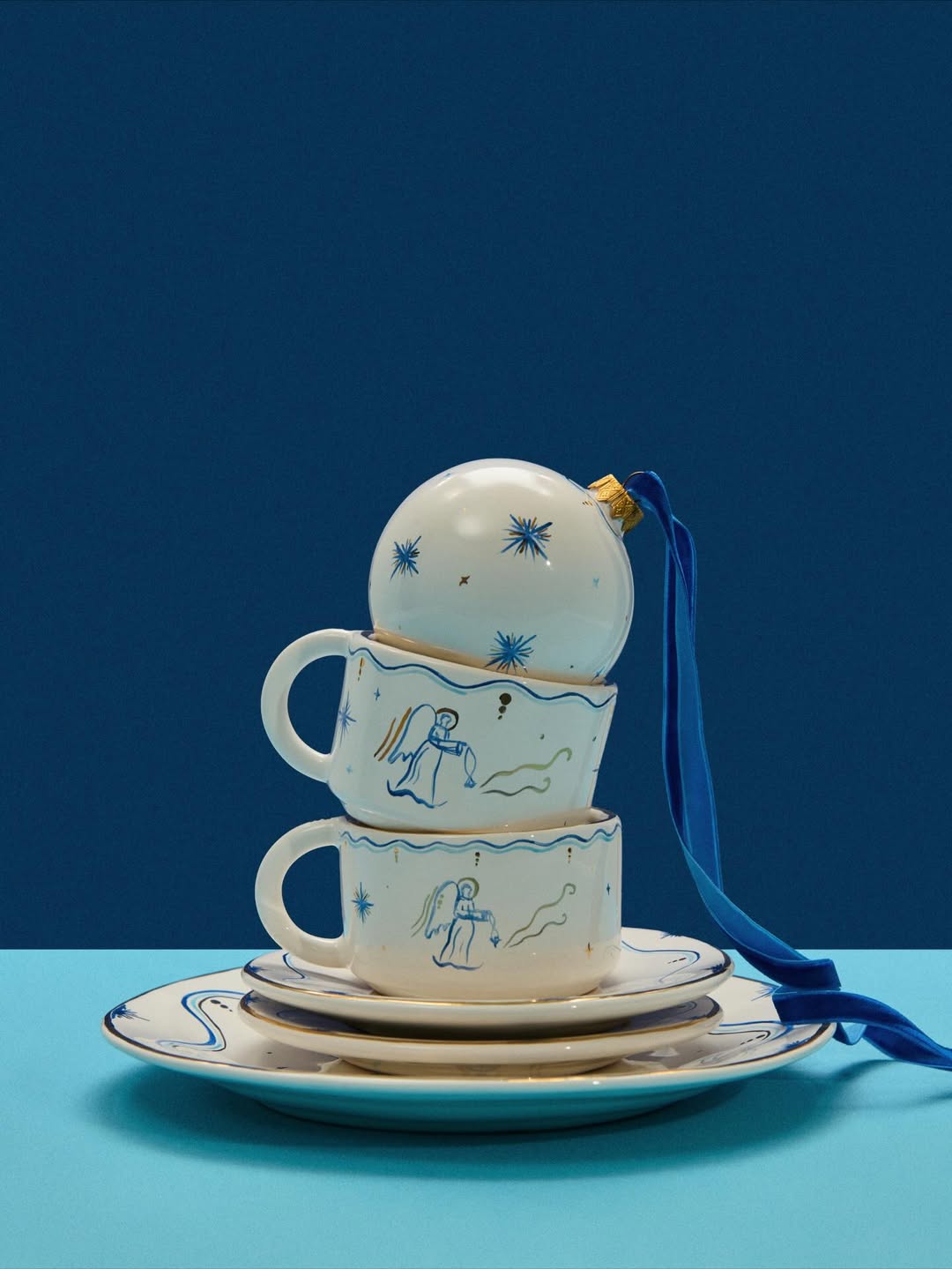 Ці образи, а також зображення серафимів, прикрашають посуд, ялинкові іграшки у формі сердець-янголів та свічники у вигляді зірки й місяця. Є тут і свічки з натурального бджолиного воску. Більшість виробів колекції виконані у класичній різдвяній палітрі — білому, темно-зеленому та приглушеному червоному кольорах — і розписані вручну.