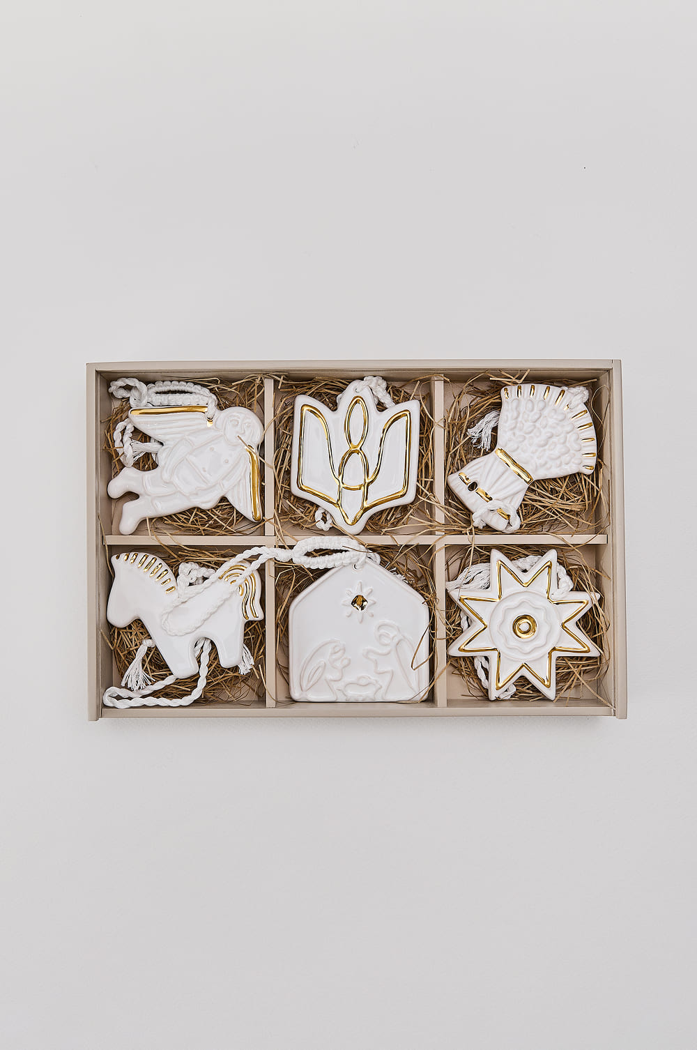 Інклюзивний бренд Lady Di atelier, вироби якого створюють талановиті художники з інвалідністю, представив три святкові набори. Перший — "Різдвяна радість" — складається з шести декоративних керамічних фігурок: коника, шопки, дідуха, зірки, ангела та тризуба. Другий — "Запали світ у собі" — включає керамічний свічник у формі тризуба, виготовлений вручну, брендовані сірники та свічки. Третій набір є варіацією "Запали світ у собі", до якого додатково увійшов керамічний ангел.