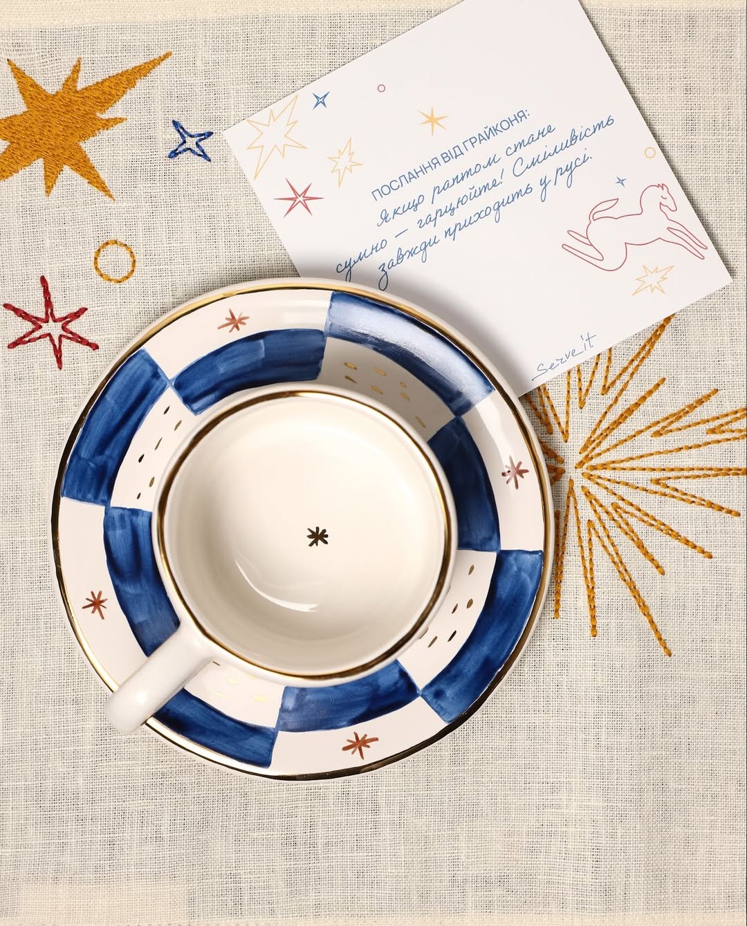 "Грайкінь" — колекція бренду текстилю з натуральних тканин Serve it, створена для оформлення святкового столу. Вона включає набори серветок: вишукані з рюшами та затишні лляні із зображеннями зірок, коня й омели. Також представили ранер, ялинкову прикрасу — великий червоний бант — і чашку з блюдцем ручної роботи із зображенням коня, що галопує.
