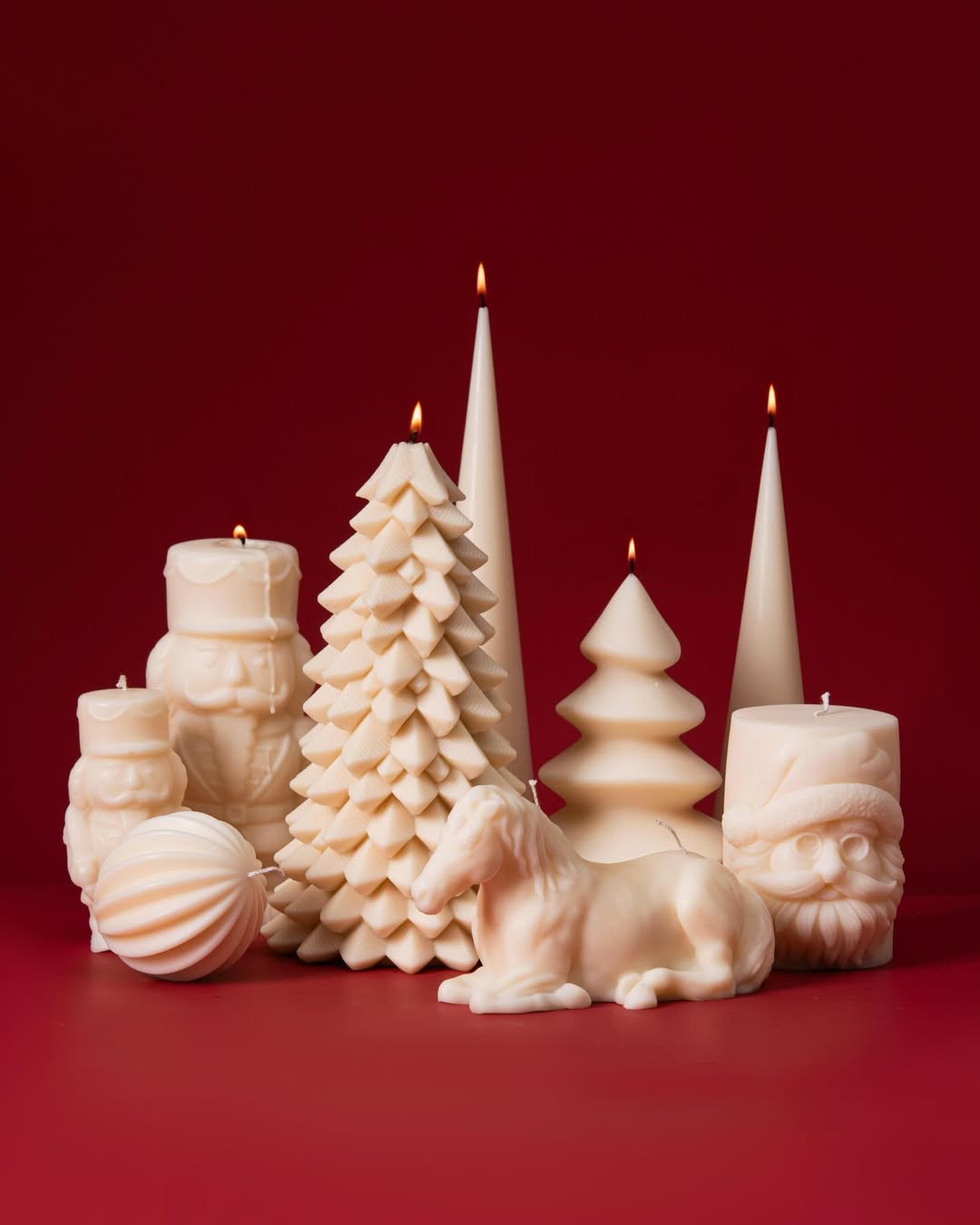 Марка свічок небанального дизайну SEMANTY пропонує додати світла в домівку за допомогою своєї різдвяної колекції. У ній представлені білі та червоні артсвічки у формі святкової кулі, коня, ялинки, лускунчика, Санти та ведмедика.