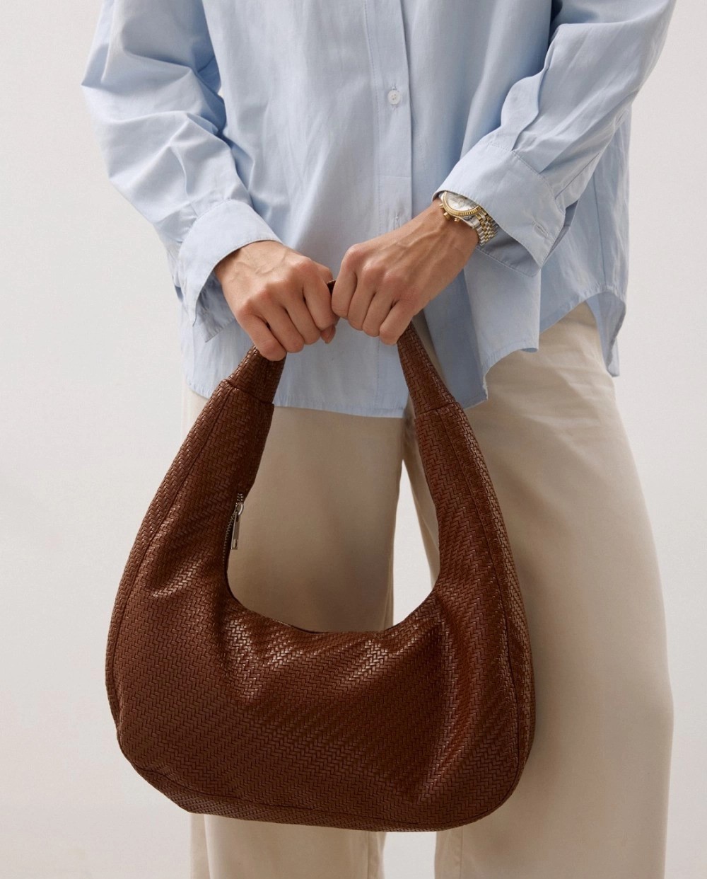 Мішкуваті, розслаблені сумки, конструкція яких утворює м'які хвилі, — грайлива альтернатива класичним моделям. Створюючи цей впізнаваний силует, українські бренди зробили ставку не лише на естетику, а й на практичність, адже такі сумки є вельми місткими.
