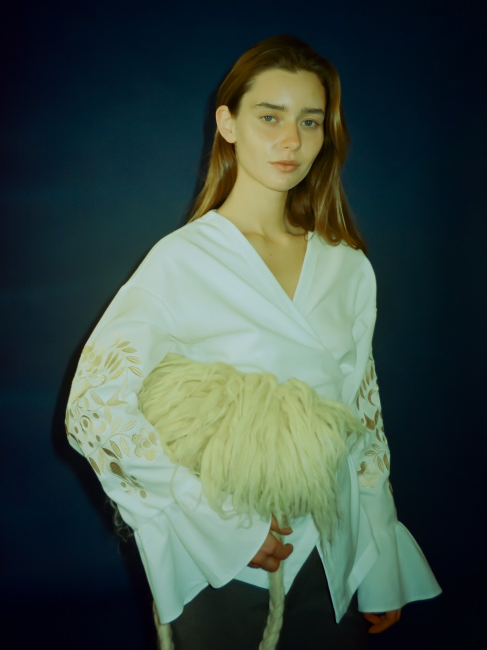 Також варто звернути увагу на пухнасті сумки Séstrynstvo та MAREVO. Перший бренд представив червону модель, зроблену зі вживаної хутряної сумки та шкіри, другий — сумку з натуральної овечої вовни, виготовлену на Закарпатті. Цей матеріал використовують для гуні — традиційного верхнього одягу гуцулів.