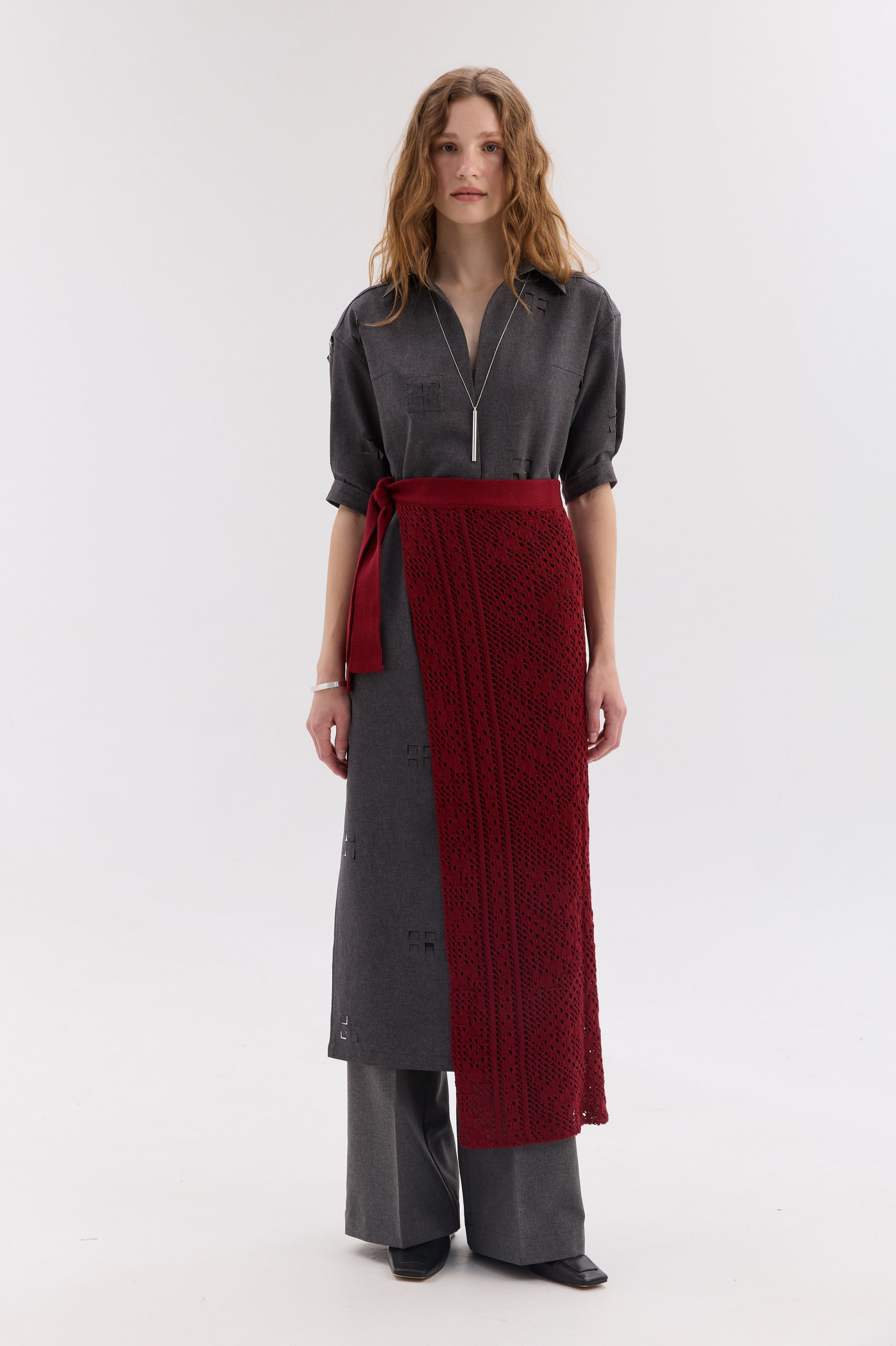 В останні роки набув популярності ще один давній елемент українського жіночого народного вбрання — фартух, відомий також як передник або запаска. Надихаючись ним, вітчизняні бренди створили небанальні та акцентні аксесуари. Серед них — в'язаний фартух із геометричним візерунком від MEREZHKA та передник із квітами фізаліса від MAREVO.