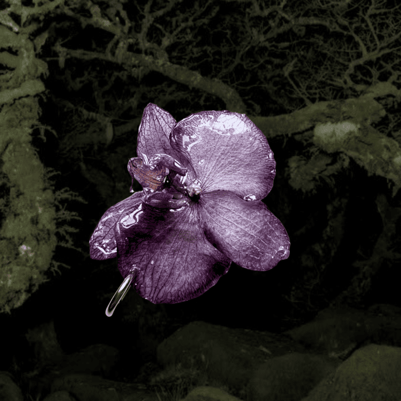 У мене є колекція прикрас зі справжніх орхідей. Вони створюються з квітів, які я стабілізую протягом приблизно 10-14 днів: квітка висушується, а потім із неї я виготовляю прикраси, які покриваю ювелірною епоксидною смолою.