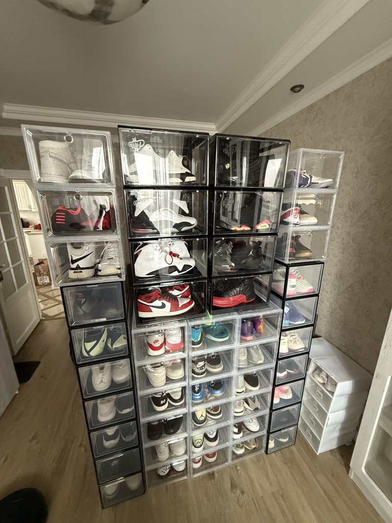 "Усе зберігається у звичайній однокімнатній квартирі: на великому стелажі, у шафах і просто в купі коробок під стіною. Звісно, це займає багато місця, але повірте, не настільки багато, як може здатися, якщо уявляти собі 200 коробок із взуттям", — каже колекціонер про місце, яке займають його кросівки.