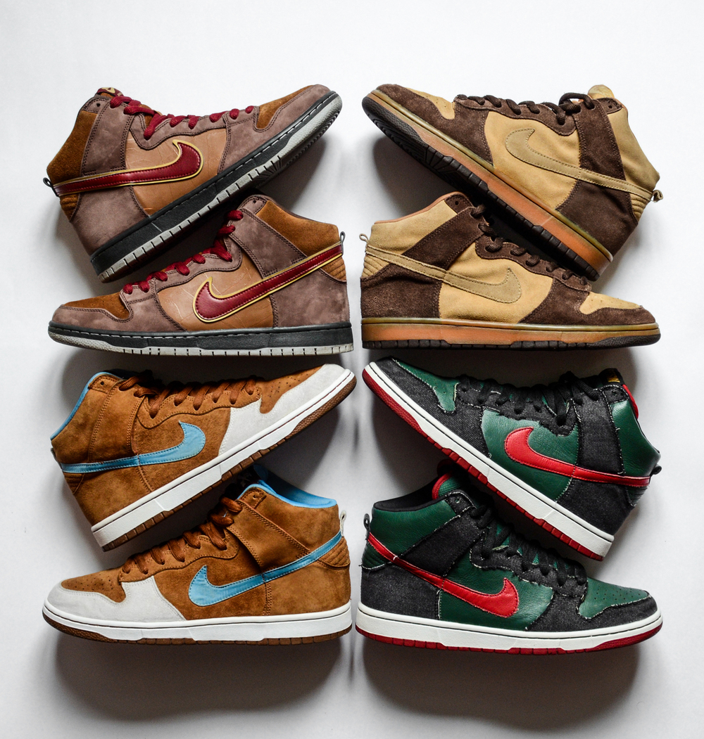 - Модель Nike Dunk, присвячена скейтбордингу. Окрім цікавого матеріалу — коркового покриття, — має посилену підошву та створена з використанням технології Zoom для швидкого руху й меншого навантаження на тіло.