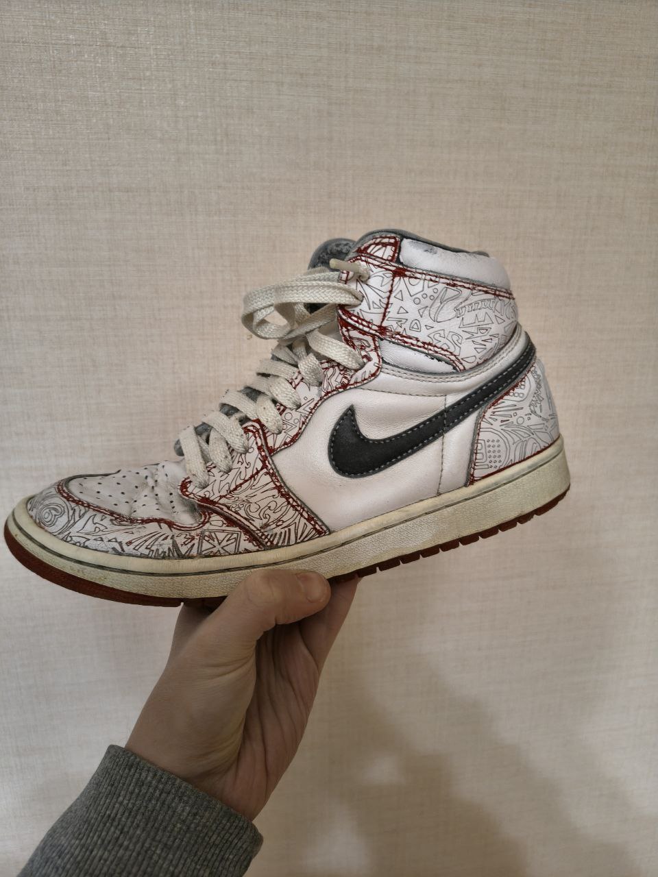 - Air Jordan 1 Retro High 30th Anniversary Laser. "Це цікава пара, яку я колись знайшов випадково. Схоже, хтось намагався її кастомізувати під палітру Chicago, але закинув цю справу, і вона потрапила мені в руки", — ділиться колекціонер.