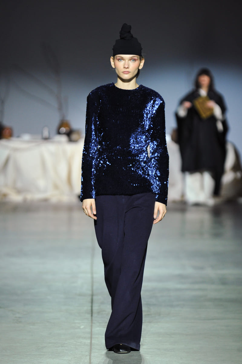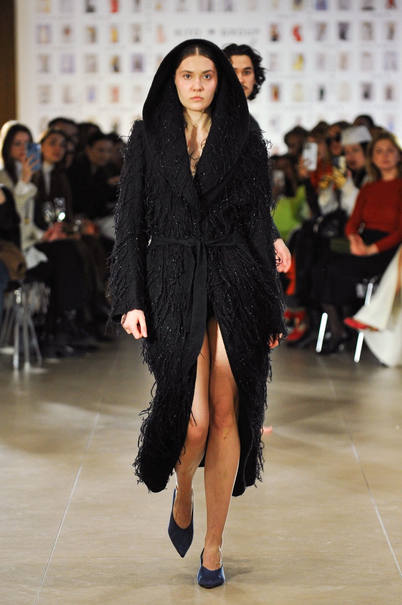 Історію про ніч і світанок від PRZHONSKA, що розгорталася на показі, доповнював акапельний перформанс співачки Мар'яни Головко.