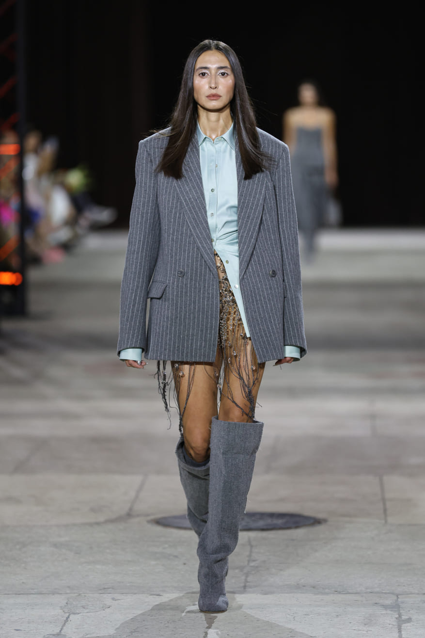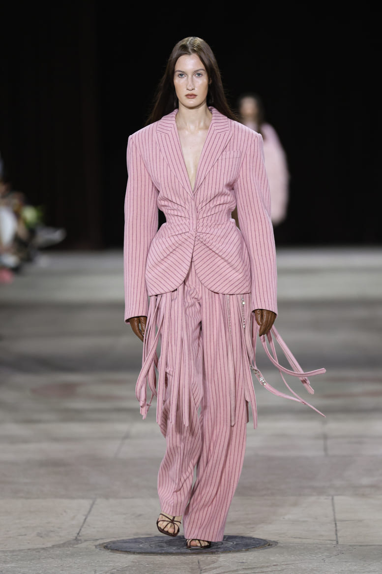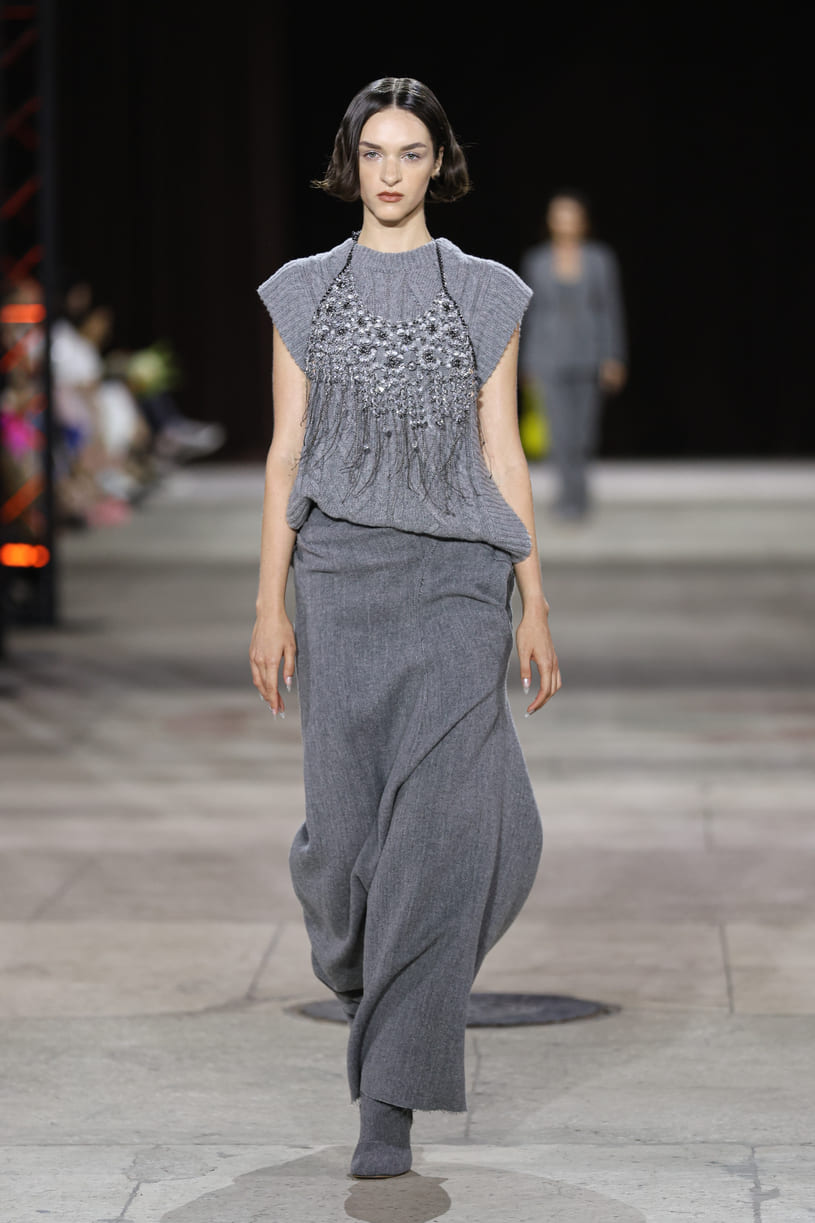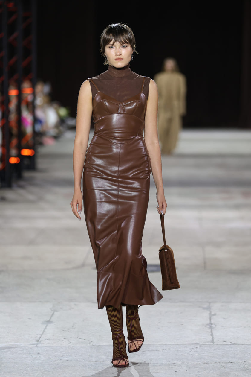 Перші образи на подіумі мали осіннє забарвлення: в шоколадних відтінках створили вільне пальто з шарфом, куртки та піджаки, шкіряну сукню-бюстьє та баски. Після них бренд представив серію бежевих луків та у трендовому пудрово-рожевому й сірому кольорах.