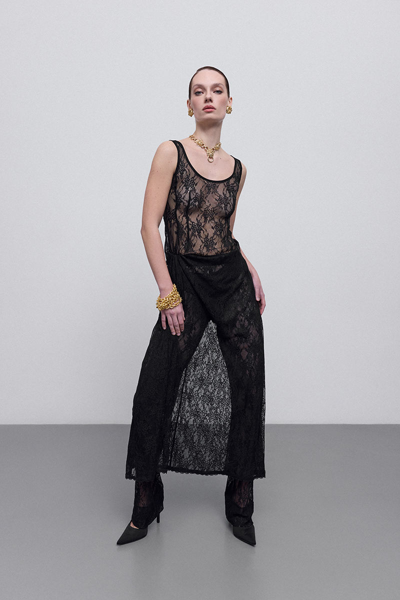 Також до колекції увійшли корсет і напівпрозорий боді з мереживом та шкіряна мідісукня.