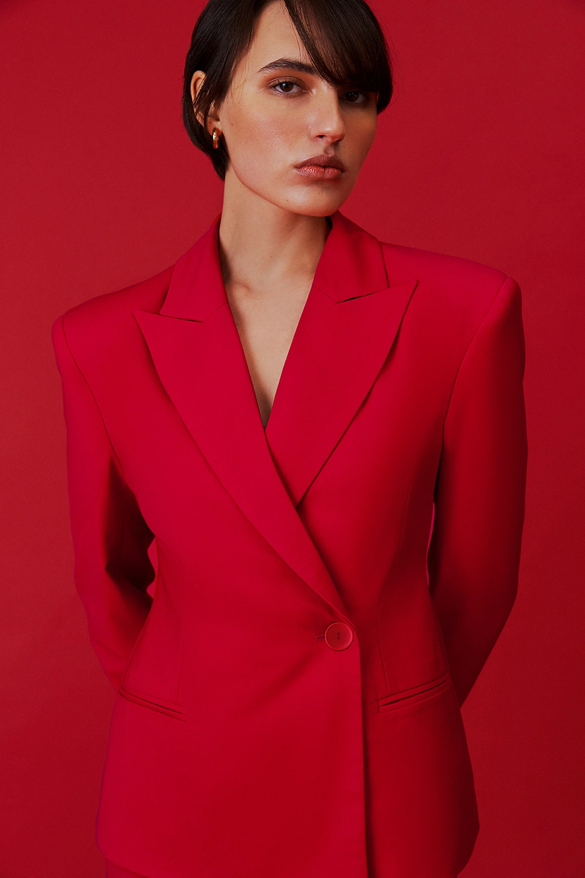Дроп MODERN ROMANCE від масмаркет-бренду MustHave включає червоний жакет та злегка розкльошені червоні штани, що підійдуть і для святкових, і для більш кежуальних образів. Серед інших новинок бренду в цьому ж кольорі — топ зі шлейфом та сукня-трансформер із кейпом, яку можна носити і як міні, і як максі.
