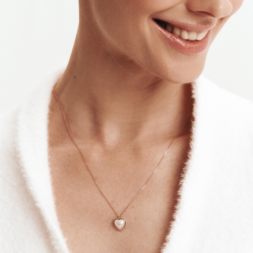 Золоте кольє-оберіг LOVE YOU, MAMA! — особлива прикраса у формі серденька з ніжною перлиною всередині. На його звороті — гравіювання LOVE YOU, MAMA!