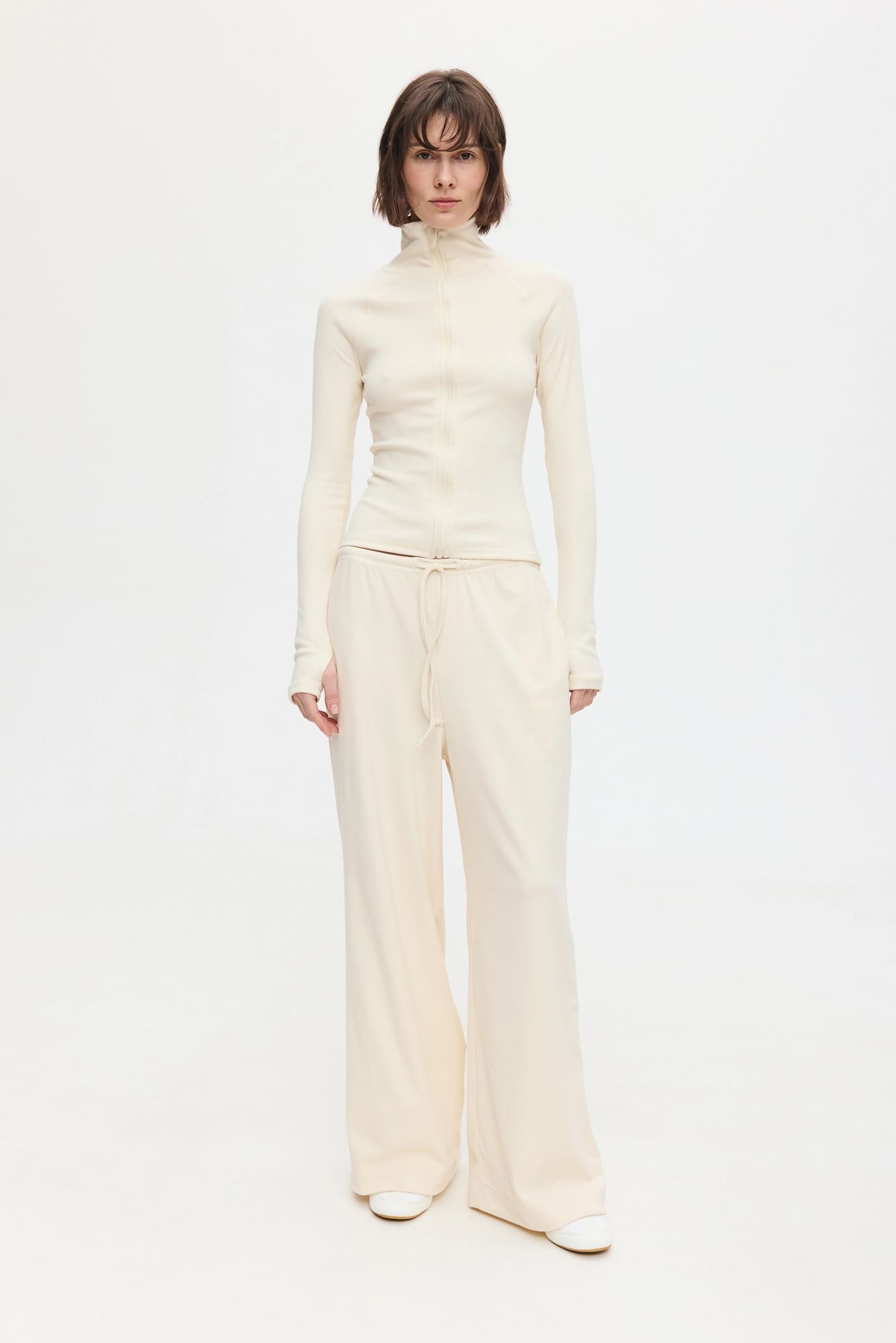 У новому зимовому дропі after. від german. ти знайдеш утеплений комплект у ніжно-молочному кольорі: приталену зіп-кофту та вільні штани з мікрофлісу, який добре зберігає тепло. Одяг для холодної пори в спортивному стилі розробив також Matiko — утеплені лонгслів та легінси-кльош в рубчик, доступні в сірому та чорному кольорах.
