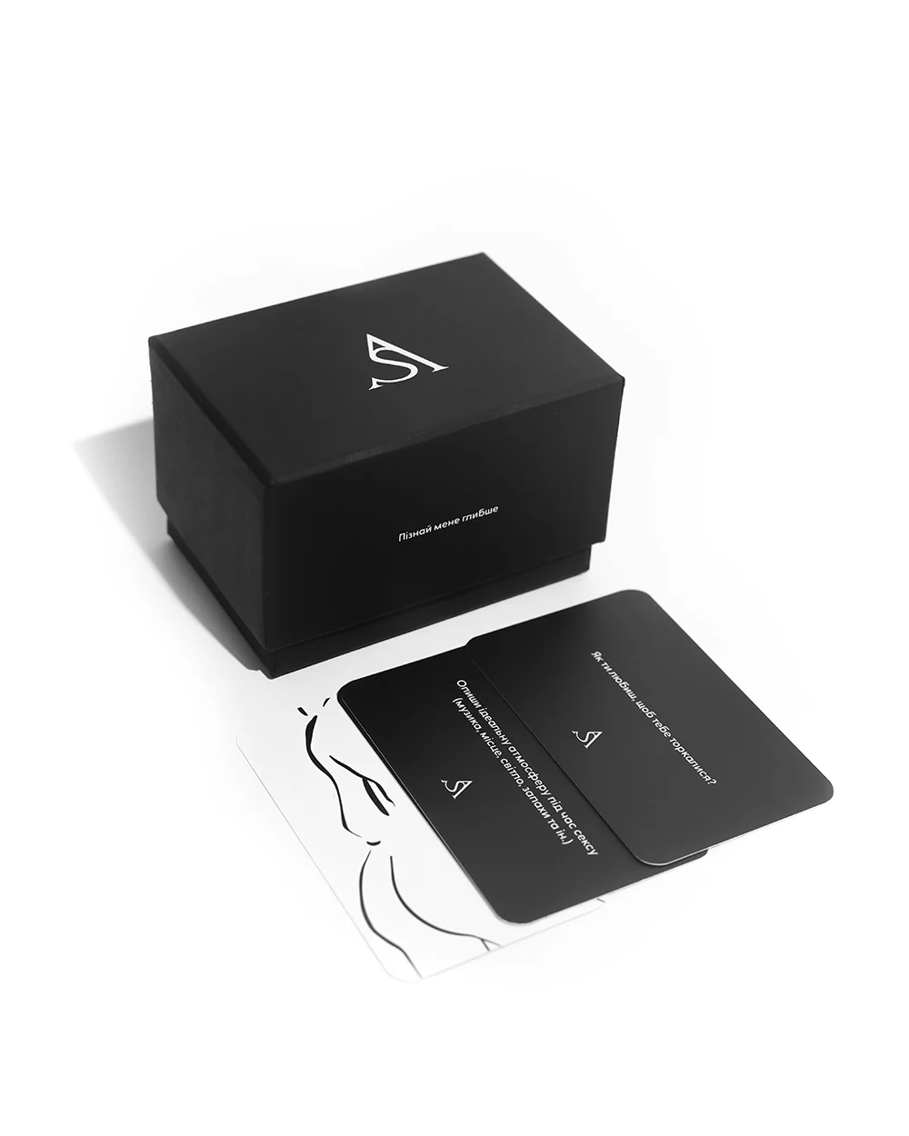 Бренд еротичного одягу Anoeses пропонує вирушити в чуттєву подорож разом із партнером за допомогою карткової гри "Пізнай мене глибше". Вона складається з трьох колод: двох із запитаннями різних рівнів та однієї з діями. Спілкуючись та виконуючи завдання з карток, ви зможете зануритися в минуле одне одного та дізнатися більше про власні бажання й фантазії, що чекають на втілення.