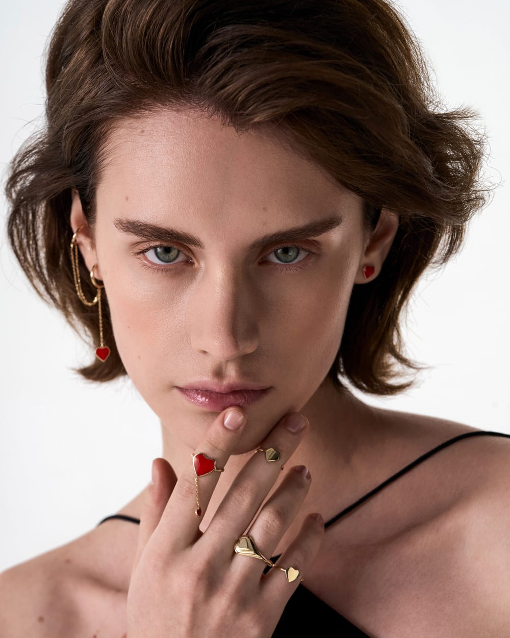 - Сережки, кольє та каблучки з нової колекції LOVERS з lab-grown сапфірами у відтінках Blush Rose та Cherry Red. Ці оздоби створені для зізнання в коханні — ніжному й пристрасному водночас.