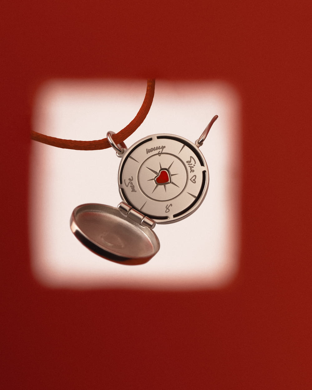 - Прикраси з колаборації SOVA × KOLA: підвіска у формі компаса та оздоби із серцем з яскраво-червоної емалі символізують спільний шлях і близькість навіть тоді, коли між вами відстань.