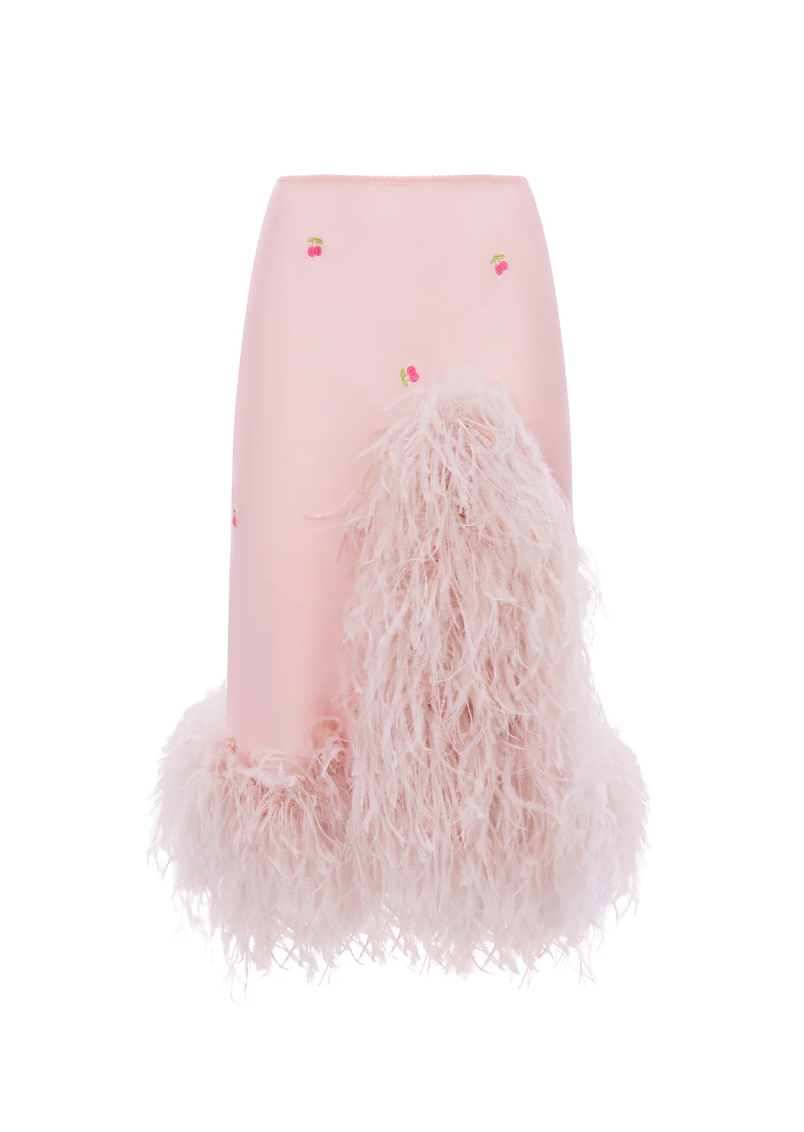 Для стильного контрасту ці верхні речі пропонують комбінувати з іншими новинками: ефектними спідницями з пір'ям, об'ємними штанами з фірмовою вишивкою СЇХ у вигляді вишень та мідіспідницями з мереживом.