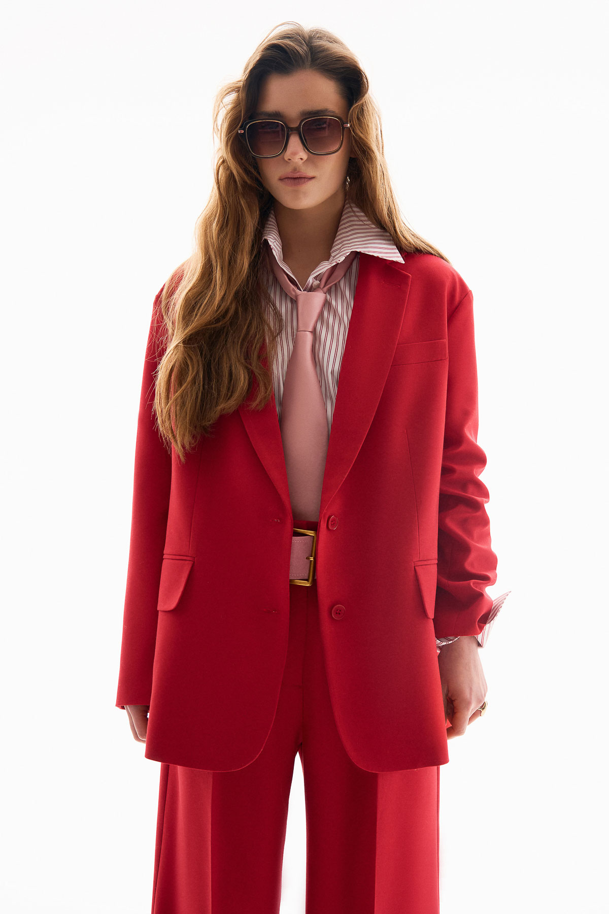 Палітра Spring Stylecare поєднує пастельні відтінки рожевого, блакитного й жовтого з яскравим червоним і універсальними молочним, чорним та сірим. Тренчам і пальтам із дропу додають характеру палантини, що йдуть у комплекті, а шкіряним курткам — високі коміри.