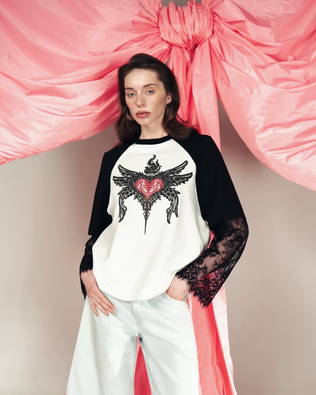 У новому дропі футболок і лонгслівів HORROR LOVE бренд Cultoni поєднав ніжність і дарк-естетику: гранжеві силуети — з романтичним дизайном, а мереживо та бантики — з вивареними тканинами.