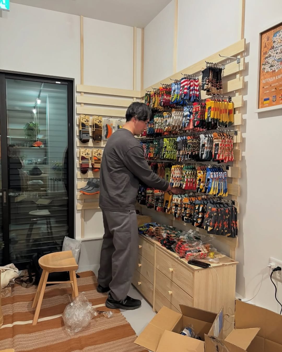 Як і вироби більшості молодих брендів, наші продукти у Японії почали продавати на поп-ап розкладках та ярмарках. Трошки згодом наші шкарпетки можна було придбати у сувенірній крамничці в Янагаві. А наприкінці 2025 року партнери вирішили відкрити окремий заклад (простір у Дзусі — прим.), в якому продають нашу продукцію й частують гостей борщем та кавою з десертами.