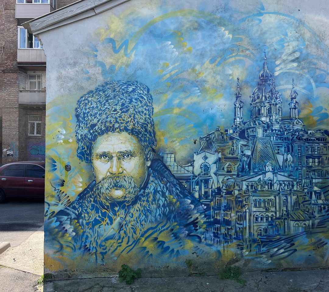 Ще одне творіння французького художника Крістіана Гемі, який знаний у всьому світі під псевдонімом C215, створив мурал із портретом Тараса Шевченка. Окрім того, у Бородянці стріт-арт художник створив серію стінописів в Гостомелі та Бучі. Мурал “Заради свободи” Ще один стінопис під назвою "Заради свободи" з'явився навесні цього року в Подільському районі. Цей стінопис уособлює незламність, силу, самовідданість та боротьбу українського народу, можна побачити неподалік станції метро "Поштова площа".