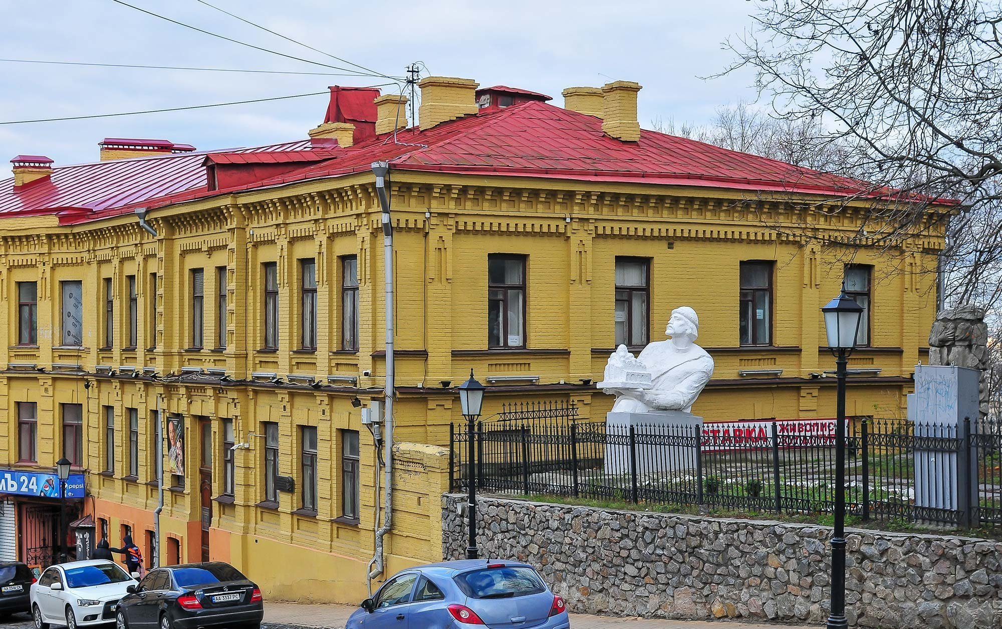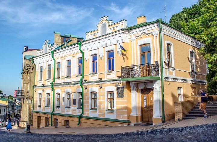 Зараз ми більше знаємо цей будинок як Музей Михаїла Булгакова, у якому 100 років тому письменник мешкав разом із родиною. Нещодавно Спілка письменників України виступила за закриття цього музею, однак Міністерство культури України вважає це місце пам’ятним. Тож і досі тут можна побачити меморіальну табличку, присвячену письменникові, та постамент, заставлений наразі фортифікаційними мішками.