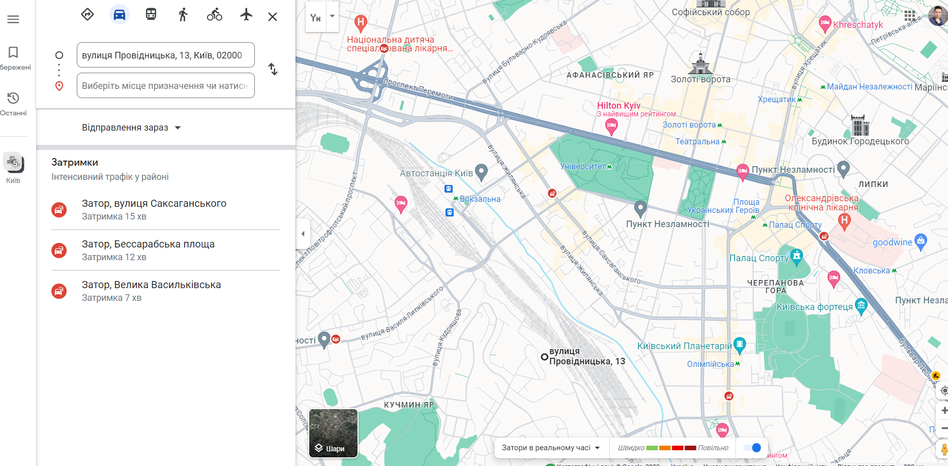 На інтерактивній мапі від Google також можна відстежувати ситуацію на дорогах у режимі реального часу. Дані про київські затори передаються щомиті, а оновлення відбувається автоматично.