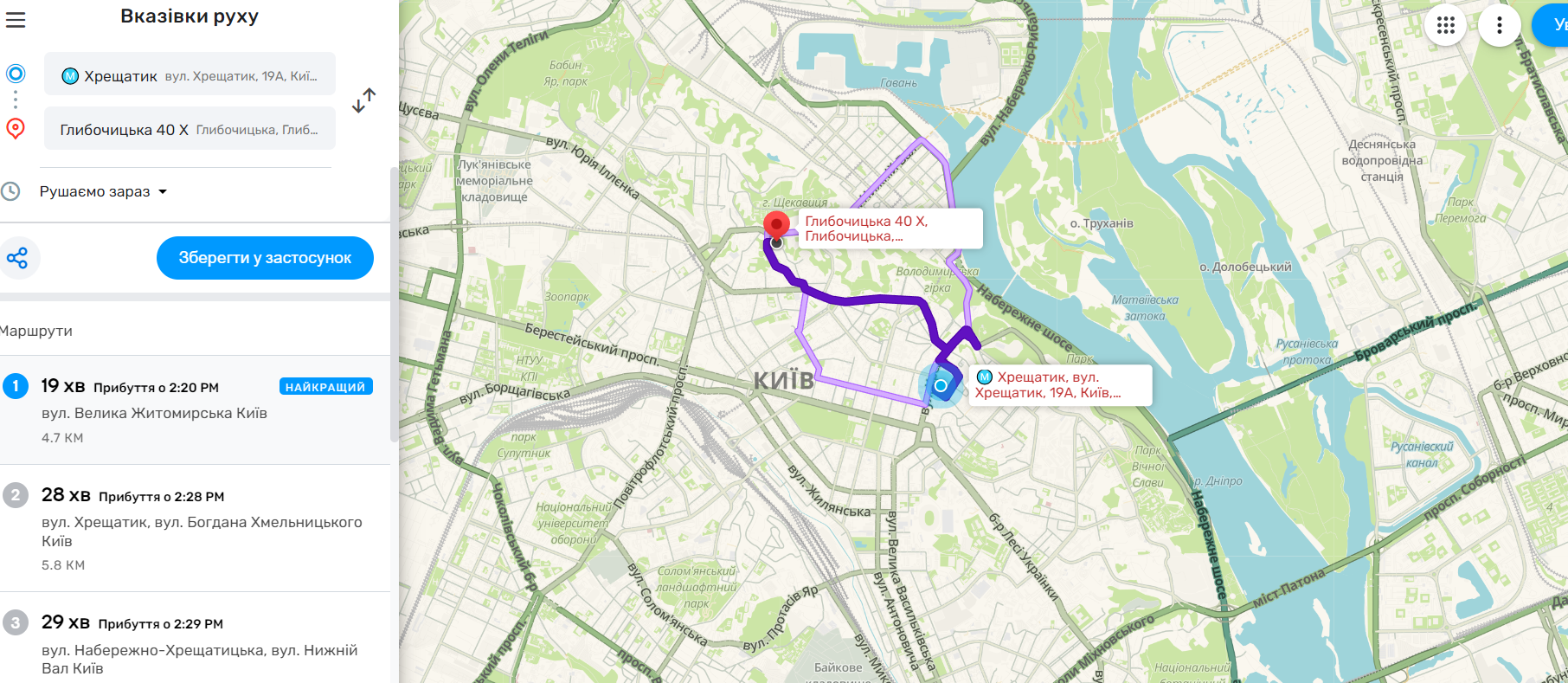 Мапа надає можливість спланувати поїздку та обрати найкращий маршрут в об'їзд заторів та інших небажаних перешкод.