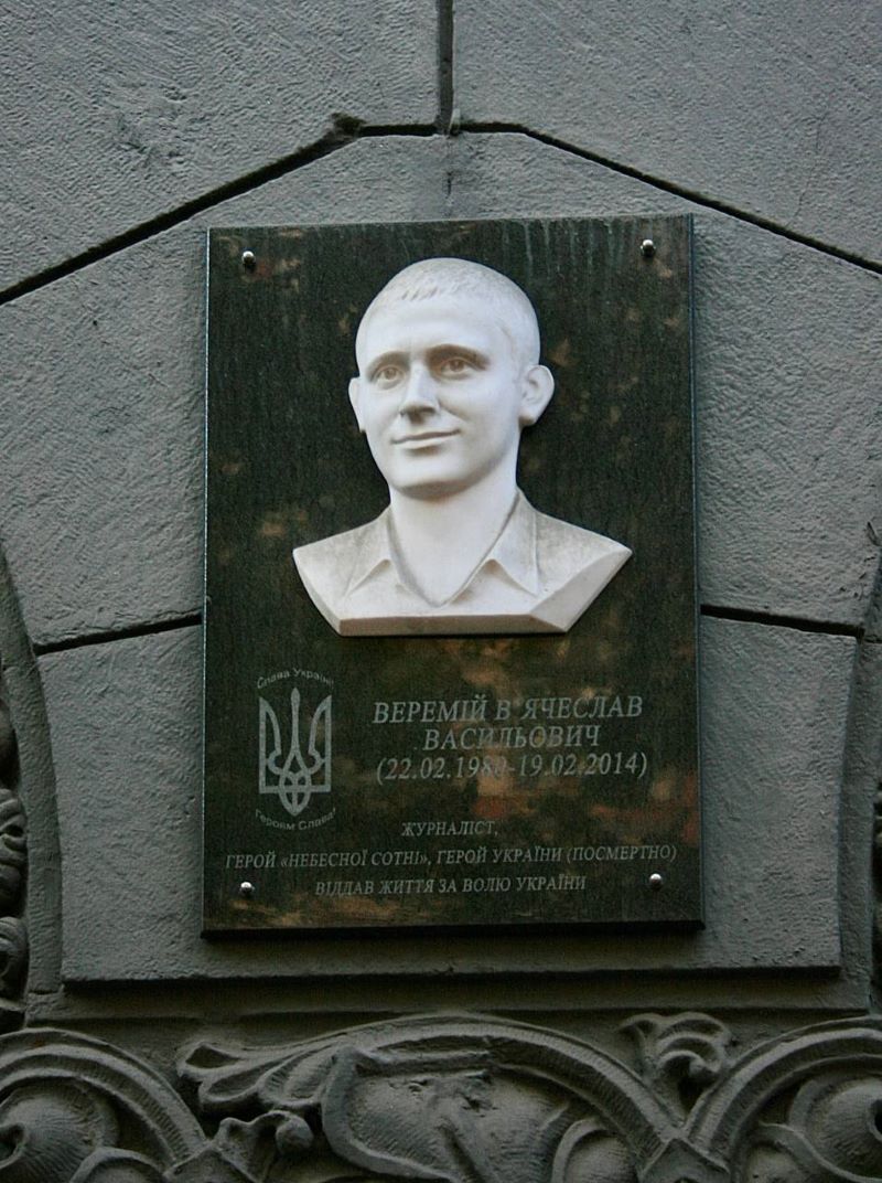 Сьома пам'ятна табличка, що прикрашає цей будинок, — на честь героя Небесної сотні, журналіста В'ячеслава Веремія, який під час Революції Гідності був вбитий тітушками на розі Великої Житомирської й Володимирської. Ймовірніше, гаргуйля це бачила. Але чомусь не вберегла…