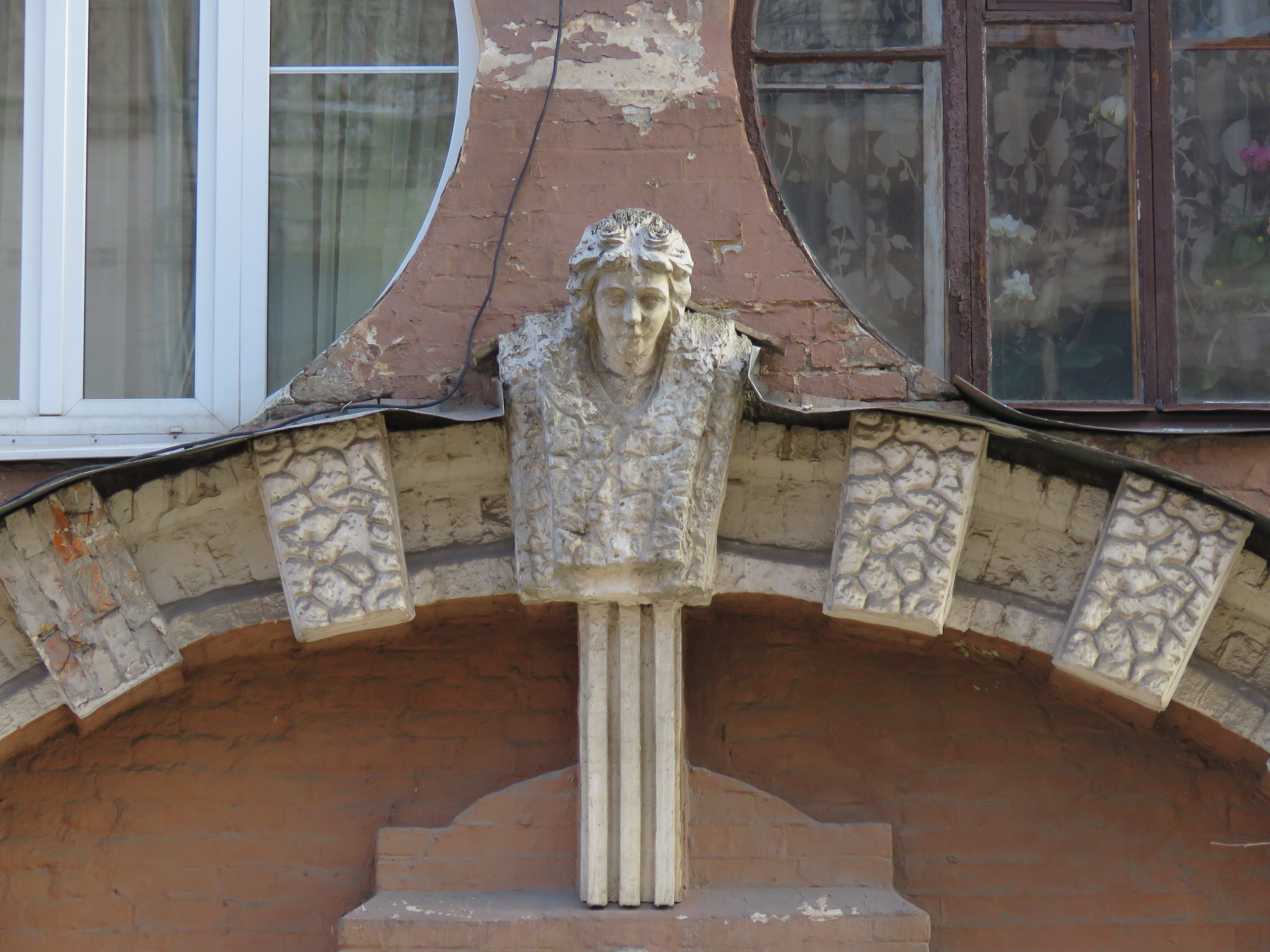 Побудував цей неймовірно прекрасний особняк (в народі — "арабський будиночок") архітектор Павло Альошин. Взаємини із замовником особняка у нього складалися доволі непрості. Тож красномовною є наступна деталь: маскарон, в якому архітектор "замаскував" себе... у вигляді котика. Порівняй сам. От світлина Павла Федотовича: