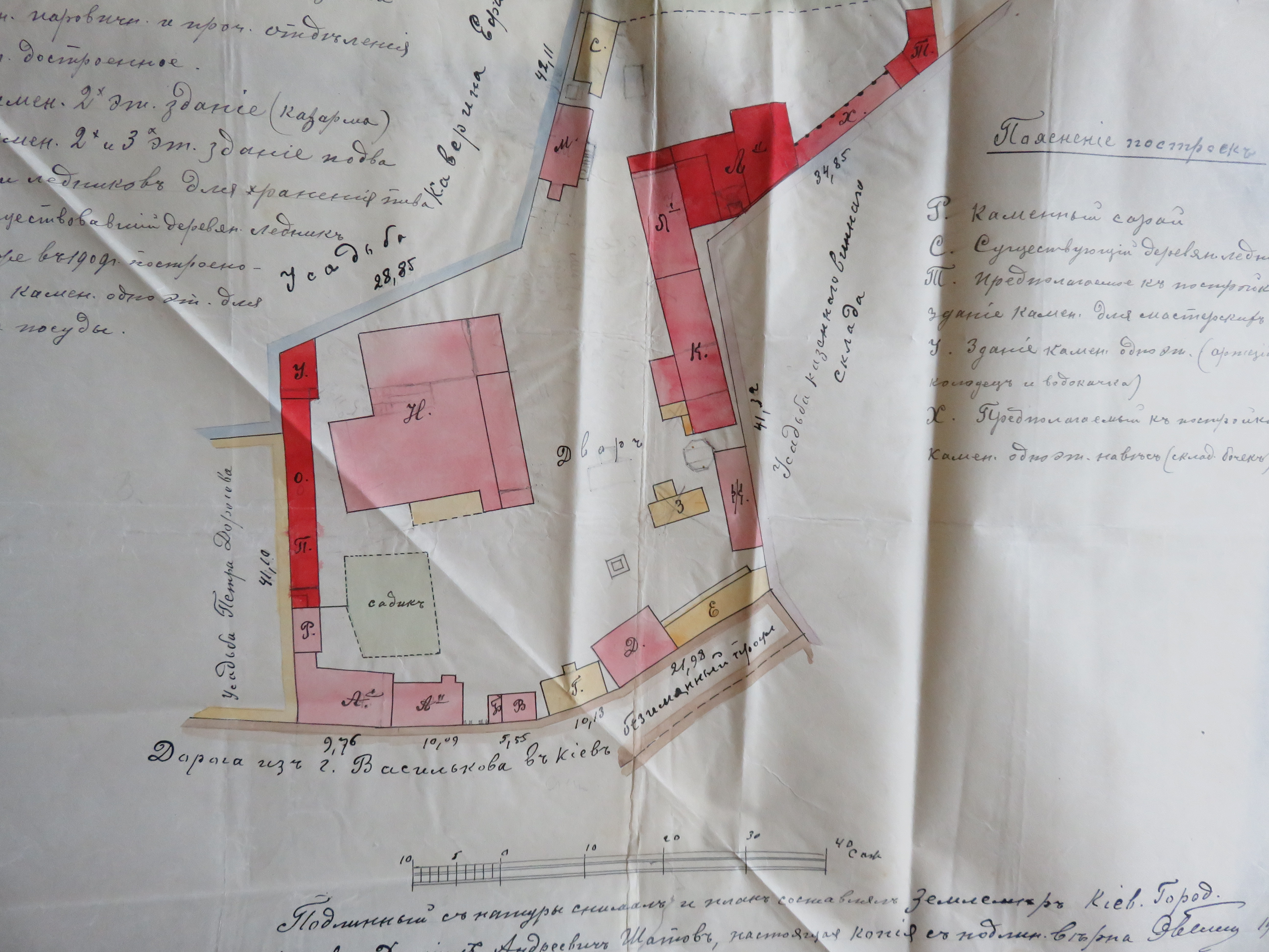 В архівах було знайдено кілька планів території заводу (площа — 2 десятини, 300 кв. сажнів) та детальні описи будівель. По центру ділянки стояв різновисотний великий корпус бродильного відділення (2-3-4-поверховий) з підвалом для зберігання пива.