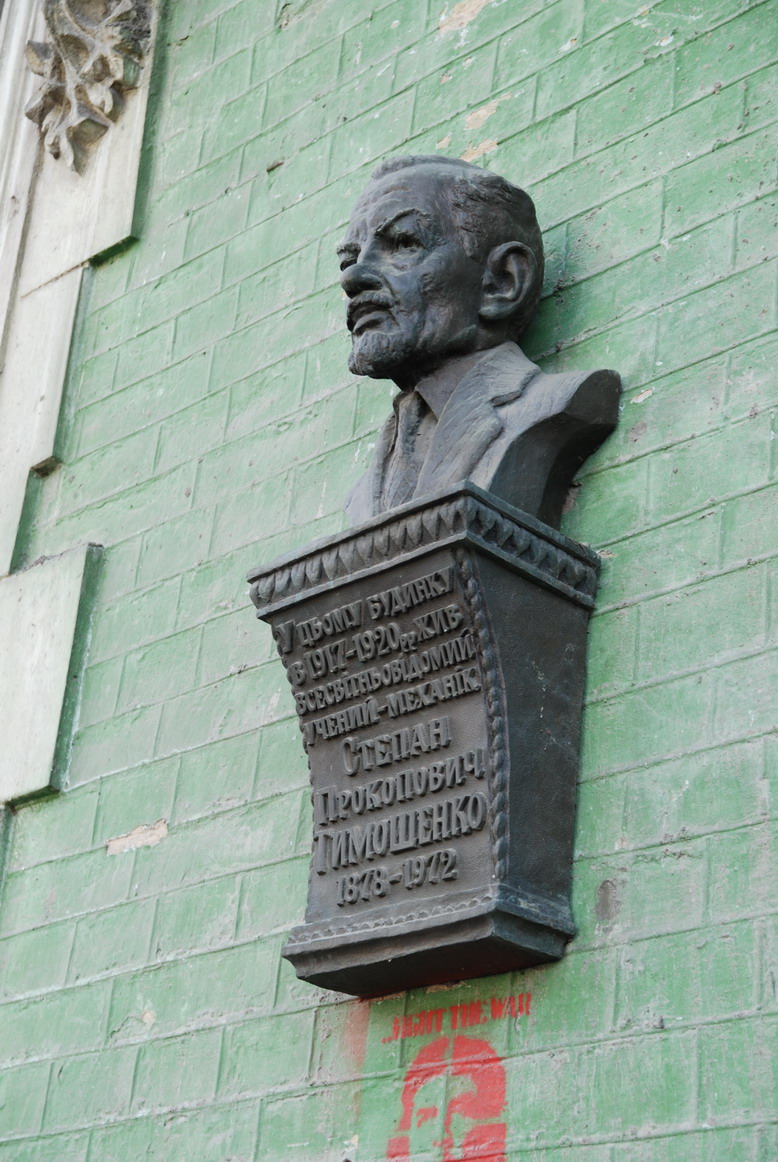 Крім привабливого декору, будинок відомий своїми видатними мешканцями, особливо ж у квартирі № 5. У 1917-1919 роках у ній жив Степан Тимошенко (1878-1972), всесвітньо відомий механік у галузі теорії пружності, опору матеріалів та будівельної механіки, академік УАН (з 1918), а в еміграції — професор Стенфордського та Мічиганського університетів. У ті роки він викладав у Політехнічному інституті. На жаль, встановлене ще у 1990-х на фасаді будинку погруддя Тимошенка було вкрадено в середині 2010-х.