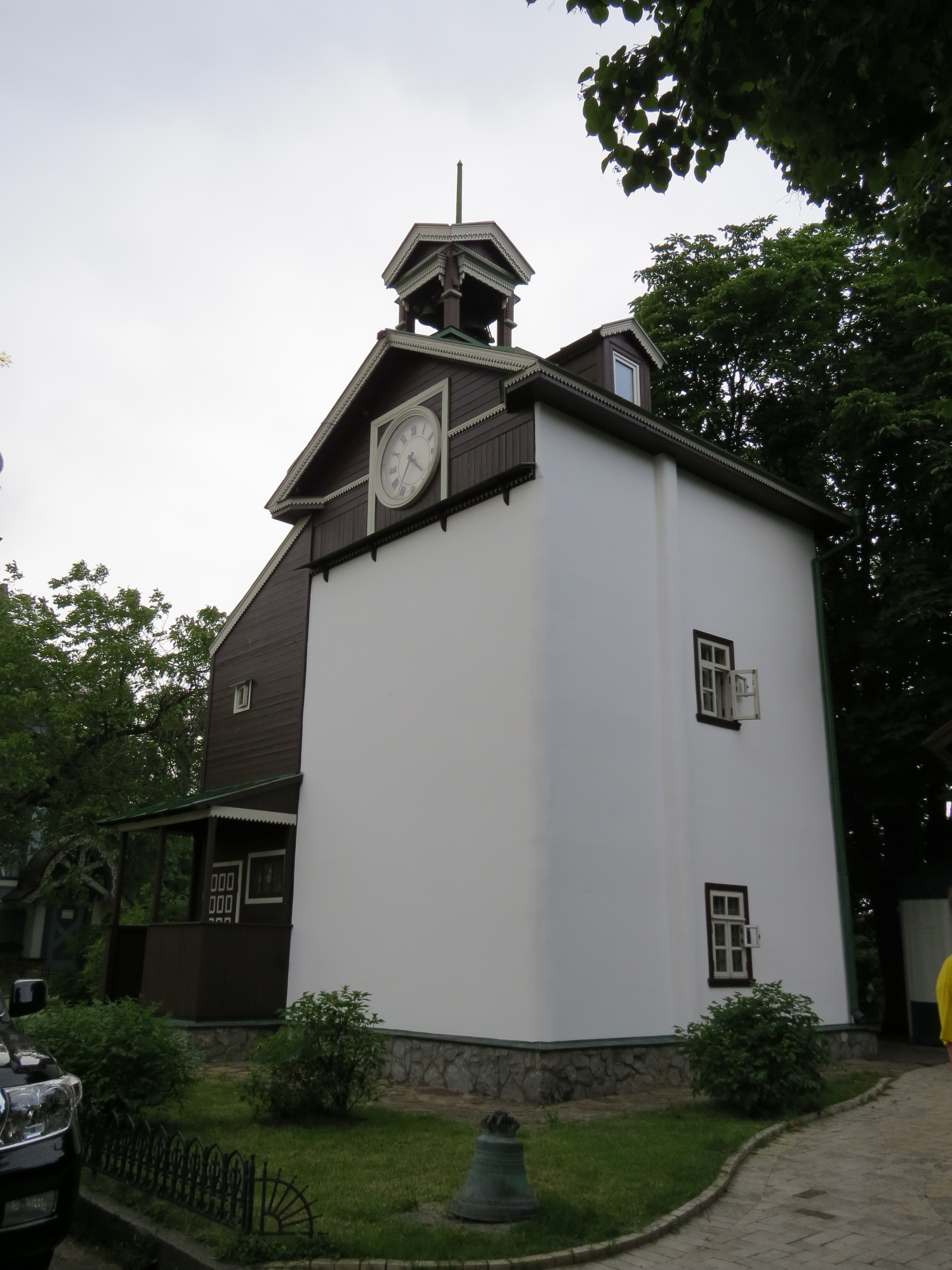 Цій годинник, 1858 року, є найстаршим діючим в Києві: він зупинився тільки один раз, під час вибухів 1918 року. Нижче схилом містяться рештки монастирського цвинтаря.