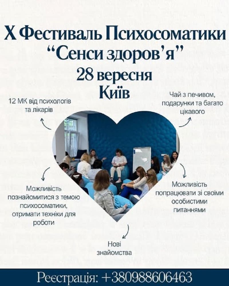 Міжнародна асоціація психосоматики та тілесної терапії організовує фестиваль для всіх, хто хоче глибше розібратися у зв'язках тіла та психіки. Місія події — показати, наскільки пов'язані переживання, думки та настанови зі здоров'ям.