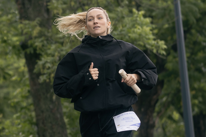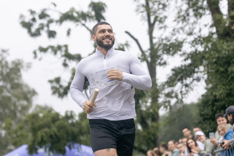 Разом із ним естафету біг фронтмен рок-гурту O.Torvald Женя Галич.